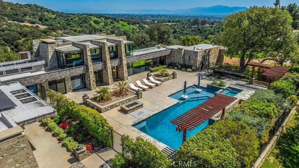 A rare opportunity to own a piece of California history! This exceptional estate, nestled in the picturesque hills and valleys of Live Oak Canyon and neighboring Webb Canyon, is now for sale. Designed by renowned architect Foster Rhodes Jackson, a disciple of Frank Lloyd Wright, this masterpiece of organic modern indoor-outdoor design is an architectural masterpiece. Distinguished by its iconic bell tower, this architectural gem was built by Jackson as his personal residence in 1955. Situated majestically on the crest of a hill, accessible by a private, winding drive, this property stands as one of the most extraordinary and unique homes in Southern California. Crafted from local fieldstone, cement, wood, and glass, this sprawling castle-like residence is a testament to Jackson's artistic vision and architectural ingenuity. The expansive 3,628 square foot main house has been thoughtfully updated to provide modern comforts while preserving its original character. In addition to the main residence, the property boasts two separate guest quarters, providing ample space for visitors or extended family; one of the guest quarters could be used as a dedicated studio/office space, ideal for creative pursuits or professional endeavors. Set on almost 10 acres of prime land, the estate offers panoramic views of the surrounding mountains and the twinkling city lights below. The expansive grounds and breathtaking vistas make this property an idyllic setting for grand-scale entertaining, weddings, or other special events. The seamless integration of indoor and outdoor living spaces furth