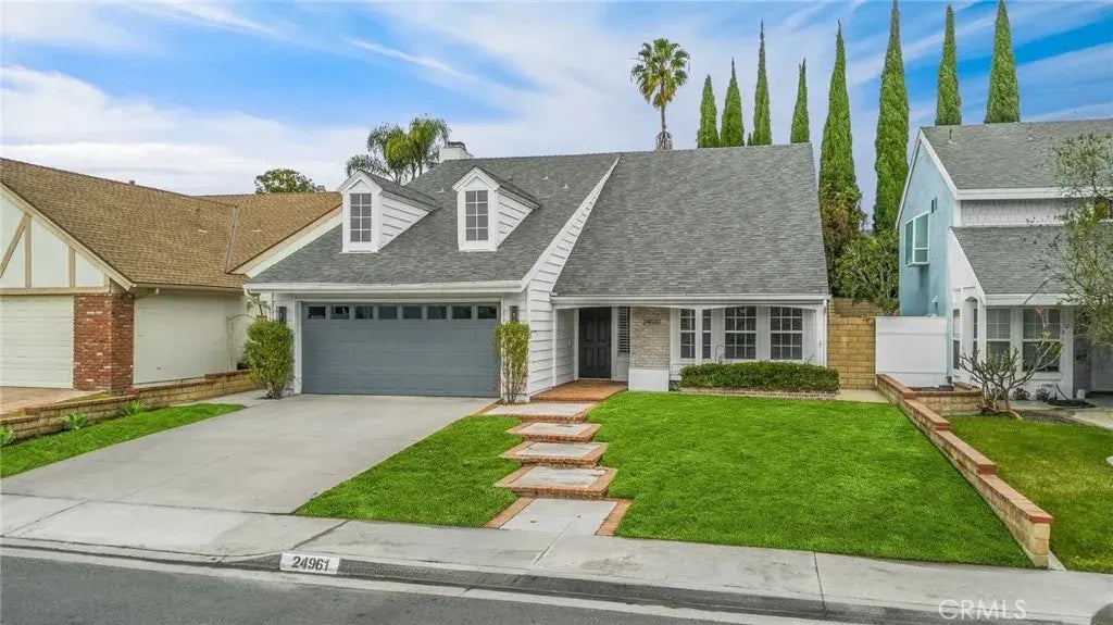 Welcome to this charming Contemporary Cape in the heart of Laguna Hills, offering 2,139 Sq. Ft. of comfortable living space. Upon entering, you're greeted by an inviting living room filled with natural light, accented by stunning vaulted ceilings. The formal dining room offers serene views of the pool area and cascading water features, creating an ideal setting. The cozy family room, complete with a brick fireplace and wet bar, opens to the kitchen with a breakfast bar, ideal for casual gatherings. The main level also features a guest bedroom for added convenience. Upstairs, the luxurious primary suite awaits, featuring a double-door entry, walk-in closet, soaking tub, dual sinks, and a separate shower. Two additional generously sized bedrooms and a well-appointed bathroom complete the upper floor. The backyard is an entertainer's paradise with a beautiful pool and spa, complemented by a large patio and landscaping. This home includes upgrades, including recessed lighting, engineered hardwood floors, a tankless water heater, and smart home features. A short stroll to nearby parks, dining, and shopping, including Mendocino Farms, Starbucks, and restaurants. This home is a perfect blend of comfort and convenience.