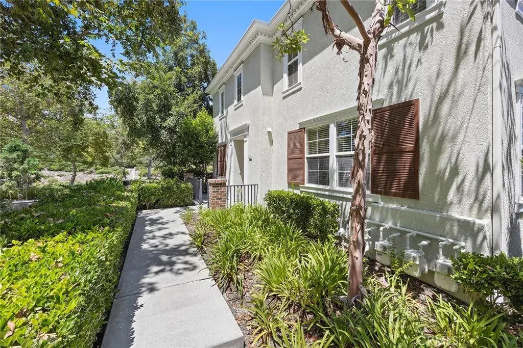Welcome to this stunning private end-unit home, where soaring vaulted ceilings and an open-concept layout create a bright and inviting atmosphere. The spacious family room features a cozy fireplace and seamlessly connects to the modern kitchen, complete with stainless steel appliances, sleek countertops, and ample cabinetry. A side patio extends your living space outdoors, perfect for morning coffee or evening gatherings. This home offers four generously sized bedrooms, including a main-floor bedroom that can double as a home office, along with three full bathrooms featuring stylish finishes. Upstairs, the primary suite boasts a luxurious en-suite bathroom with dual vanities, a soaking tub, and a separate walk-in shower. Elegant hardwood floors flow throughout the main level, while designer carpetingenhances the upper level. An attached two-car garage provides direct access and ample storage. Conveniently located near shopping, scenic trails, and top-rated schools, this home offers the perfect blend of comfort, style, and accessibility.
