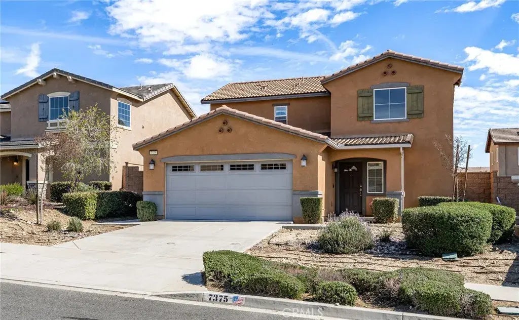 Located in one of the most desirable neighborhood communities of Fontana, California, 7375 Flagstone Way is a charming single-family home offering 3 bedrooms and 2.5 bathrooms within 1,609 square feet of living space. Built in 2017, this residence features an open floor plan with high ceilings, creating a bright and open atmosphere and welcoming ambiance as soon as you arrive. The large and spacious kitchen is equipped with granite countertops. The private backyard is a blank canvas for its new owner and provides a serene space for relaxation or hosting guests. With solar panels in place, this home is energy-efficient and ready to help you save on your utility bills. Conveniently located near shopping centers, parks, and nearby entertainment options, this home is priced to sell and has no HOA. Nearby schools include Mango Elementary, Wayne Ruble Middle School, and Fontana A.B. Miller High School, as well as near the 210 freeway. Dont miss the opportunity to make this beautiful home yours!