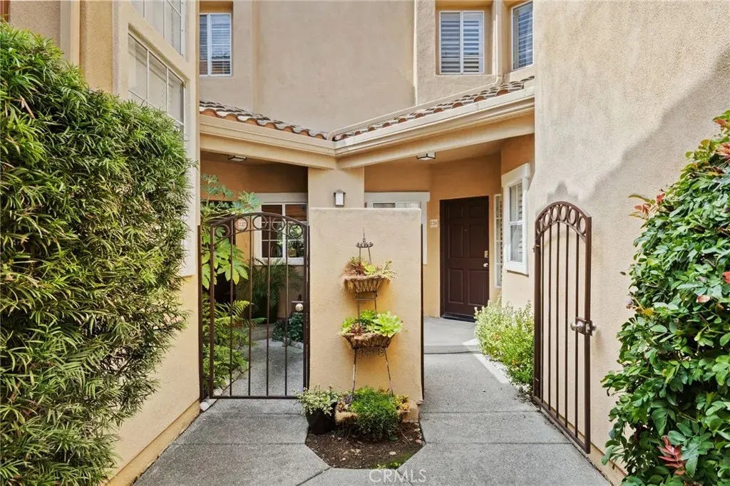Peaceful, private, and beautifully appointed, this lovely Chandon home truly shines. Situated in a prime location on the West side of the community, this 2 bedroom/2.5 bath home backs to a lush greenbelt lined with mature shade trees. Highly prized for its floor plan, this townhouse style home provides a private courtyard entry with Ring doorbell, which opens to the spacious living room filled with natural light. From the living and dining rooms, sliding glass doors invite you to explore the generous rear garden patio, ideal for entertaining. Open to the dining room, the bright and airy upgraded kitchen boasts quartz counters and newer stainless steel appliances. Upstairs, spacious dual master bedrooms with vaulted ceilings await, with en suite baths and park-like views. An Ecobee smart thermostat and remote sensors keep cooling and heating bills down; temperatures can be managed from your phone anywhere in the world. Upgrades include premium hardwood flooring throughout, plantation shutters, recessed lighting in the kitchen, custom paint throughout and upgraded bathrooms throughout. Both upstairs bathrooms have been fully renovated and modernized, along with new lighting throughout. Other amenities include a full size laundry room, two car garage with direct home access, a gas fireplace and a rear patio gate which leads to the greenbelt beyond. There is ample storage in an oversized space under the staircase, in addition to ceiling racks in the garage. Close to shopping, restaurants and a walking/biking trail to world class beaches, Chandon residents also enjoy a community