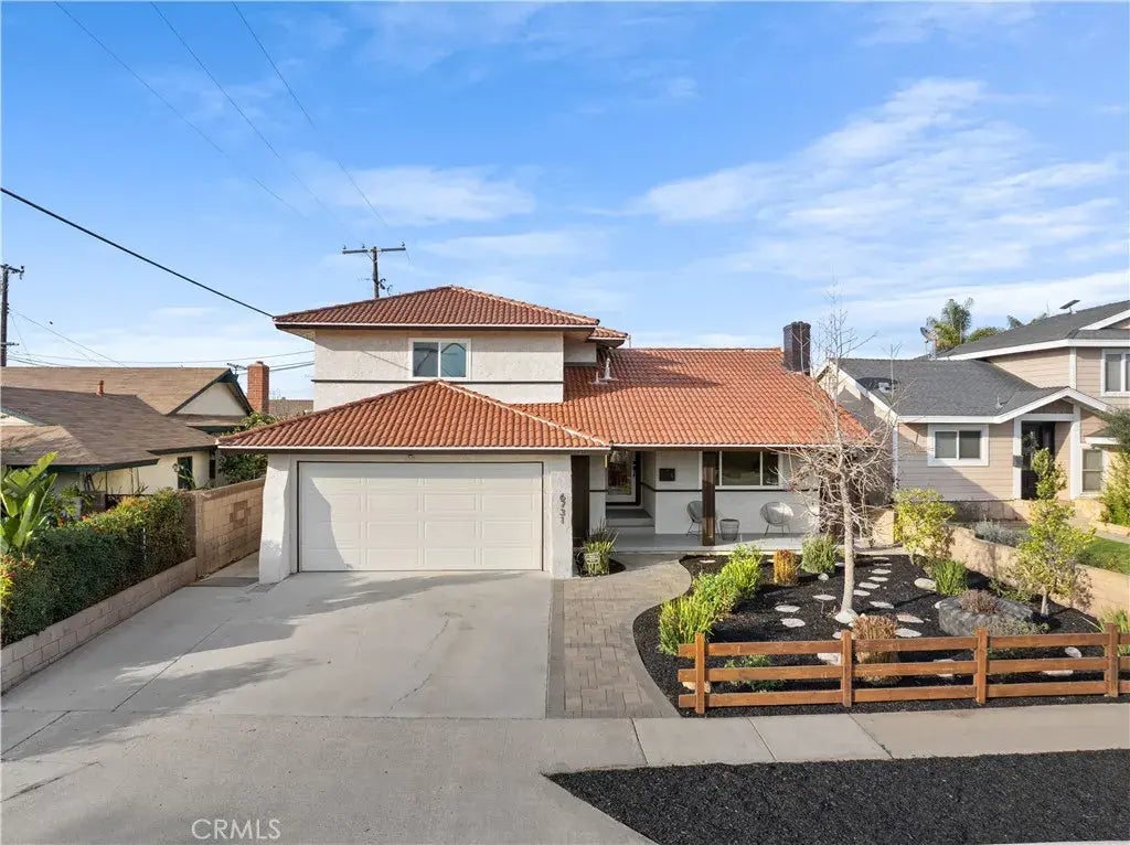 Welcome to this stunningly remodeled 4-bedroom, 2-bath home in the heart of Cypress! Every detail has been thoughtfully upgraded, from fresh interior and exterior paint to modern finishes throughout. The open concept design features sleek glass panels separating the kitchen and family room, creating a bright, airy space. The brand-new kitchen boasts custom cabinetry, quartz countertops, state of the art appliances, and recessed lighting. The well designed layout includes a convenient downstairs bedroom and full bath, while three additional bedrooms and another bath are upstairs. Upgrades include a brand-new central AC and furnace, a tankless water heater, and a newly installed garage door motor for added convenience. Ideally located just a block from Patton Elementary and minutes from Disneyland and Knotts Berry Farm, this home also offers a spacious backyard perfect for family gatherings. Dont miss this incredible opportunity!