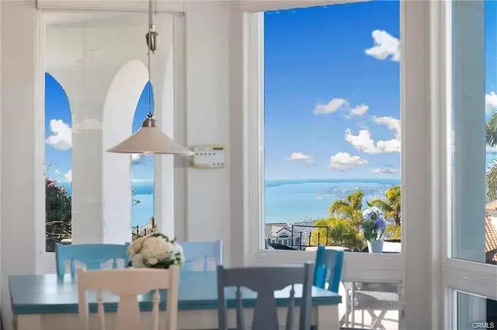 Crowning one of the highest hilltops in San Clemente, this fresh and airy Mediterranean masterpiece embraces top-of-the-world ocean views that include Dana Point Headlands, the harbor and twinkling city lights. Approximately 4,800 s.f., the open and airy design is bathed in natural light that illuminates a circular two-story foyer with curving staircase, a step-down living room with fireplace, formal dining room with cove lighting, 4 ensuite bedrooms including one on the first floor, office/5th bedroom, and 4.5 baths. Ocean views are enjoyed from a fireplace-warmed family room with built-in entertainment center and walk-in wet bar, and the adjacent kitchen showcases a stylish remodel, complete with white Shaker cabinetry, granite and quartz countertops, an island with seating, walk-in pantry, nook, and pro-grade appliances. Freshly painted, the interior is distinguished by crown molding, French doors, plantation shutters, and travertine tile, carpet and hardwood flooring. A spacious loft area at the top of the staircase includes a library with built-in shelving, and the large office reveals a view balcony. Sweeping Pacific vistas and vaulted wood- beam ceilings accentuate a master suite with balcony, two-sided fireplace, retreat, two walk-in closets and a jetted tub. At nearly 16,000 square feet, grounds offer room for enjoying an in-ground spa, built-in BBQ and a firepit. A turn-in driveway leads to a three-car garage with an enormous work space and separate storage room.