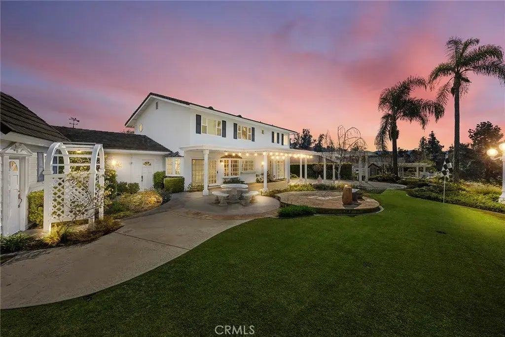 What a fabulous location right on the 2nd hole of the Yorba Linda Country Club! Great views across the golf course and no obstructions. Many upgrades and freshly painted and new carpet make it turnkey and ready to move in. Four bedrooms upstairs and three baths can accommodate the needs of your family. Come on over and enjoy the curb appeal and the double door entry into this spectacular home. You are greeted by the spacious living room with beautiful fireplace and the formal dining room with French doors that lead out to the awesome backyard. Then the kitchen space with lots of counter space and also has the backyard view. Enjoy your morning cup of coffee in the breakfast nook. This home is the epitome of relaxation and comfort. Take the stairs and then into the primary suite with lots of closet space, a fireplace and custom cabinetry. Step into the master bathroom and enjoy a soak in the jetted tub in this remodeled space. Dual sinks elegantly appointed with golden faucets. A walk-in shower and a private toilet room as well as a walk-in closet complete this space. Down the hall is the hall bath with double sinks and a tub/shower. Then a large room that divides into two additional bedrooms, each with its own entrance and closet. The fourth bedroom has built in bookshelves. You have options depending on your needs. The final touch inside is the laundry room. Then, check out the secret space under the stairs, ask to see that feature. Outside you have an attached shed that can serve as a workout room or a workshop. On the other side of the backyard is the golf cart garage, ve