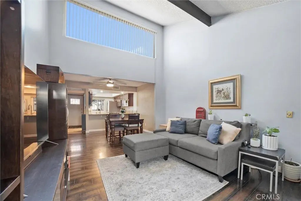 Welcome to Heritage Village! This charming single-story, 2-bedroom, 2-bath attached home is move-in ready. The beautifully upgraded kitchen features granite countertops, custom cabinetry, recessed lighting, and crown molding. Additional highlights include remodeled bathroom, updated windows and doors, tile flooring and a spacious granite breakfast bar for extra seating. The dining area has vaulted ceilings, a cozy fireplace, and elegant hardwood flooring. A sliding door opens to a large covered patio, perfect for outdoor relaxation. The primary bedroom offers vaulted ceilings, large closets with custom organizers, and an en-suite bathroom with updated fixtures, a granite vanity, custom cabinetry, and a tiled step-in shower. An indoor laundry area adds extra convenience. The attached garage includes a loft area, ideal for an office or extra storage. The property also provides one garage space and two additional parking spaces right in front. Enjoy the amenities of Heritage Village, including a pool, spa, recreation room, and BBQ. This home offers comfort, convenience, and a welcoming community! FHA and VA loans are welcomed! Don't miss this opportunity!!!
