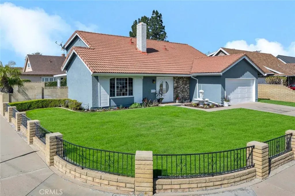 Gorgeous, nicely upgraded corner lot beauty with exquisite curb appeal, four bedrooms and two baths, with an extra-large front yard and massive back yard, huge oversized two-car garage and possible RV parking, an entertaining backyard with HUGE patio cover & grassy play areas, all with an open floor plan, downstairs Master bedroom and possibly even room for an ADU! Starts with a freshly painted exterior, beautiful front yard with gorgeous lush, green grass and colorful flowers along every walkway and in every planter. Then enter through the stunning double door entry with leaded glass inlays, and grand entrance that has a beautiful picture window in front, even has rain gutters and sprinkler system all around. Enter into the wonderful living room with streams of light coming in, anchored by a large stone fireplace and a elegant wood mantle. Then next into the large dining room (which could be a family room) with a fantastic chandelier and a high-end vinyl slider giving easy access to the huge backyard. All this opens to the nicely upgraded kitchen with birch cabinetry, Corian counters, five burner GE profile cooktop, a GE oven and matching microwave, a Maytag dishwasher, an extra-large pantry with pullouts, recessed lighting, and an abundance of cabinetry. The very large downstairs Master bedroom (13 x 12) has an adjacent full bath with shower over tub accented by a new shower wand. Bedroom number two upstairs is extra-large (13 x 12) with extra-wide mirrored wardrobe sliders. The hallway bath has dual sinks and dual vanities, a newer toilet and a walk-in shower with tile w
