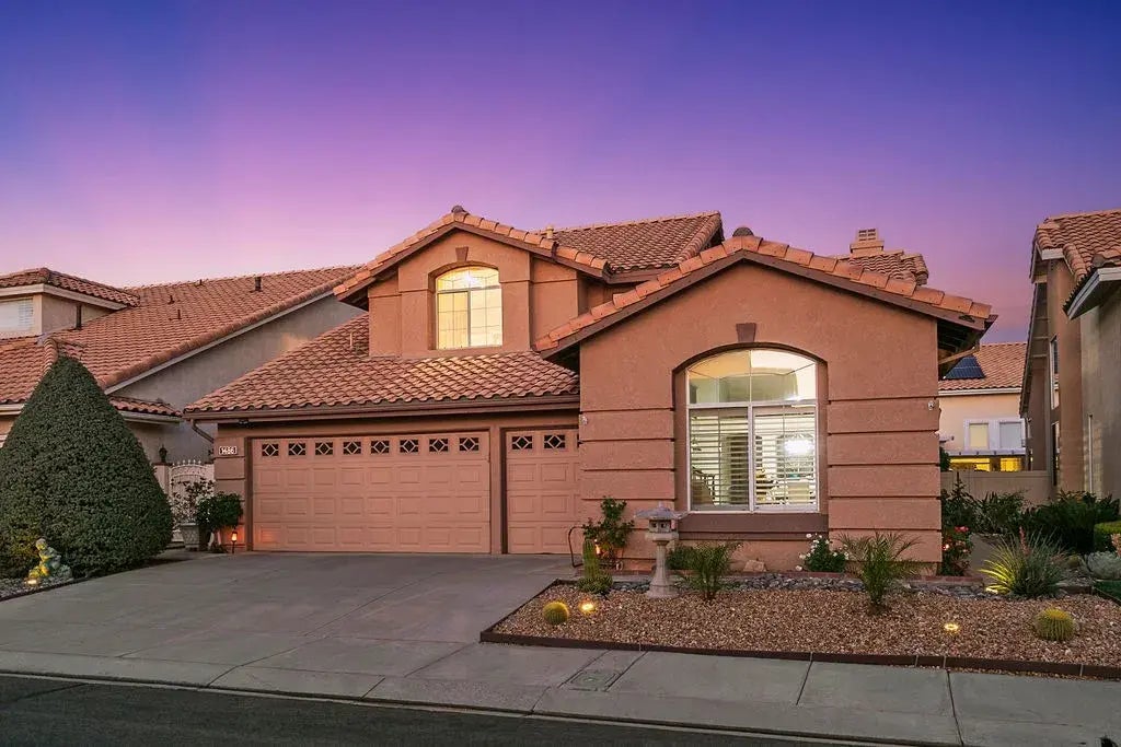 Discover resort-style living at 1486 Birdie Dr, within the prestigious guard-gated Sun Lakes community, designed for those 55+ seeking an active yet peaceful lifestyle. This rarely available, largest model in the neighborhood +2.5 garage, offers a spacious and thoughtfully remodeled first-floor layout, perfect for entertaining and relaxation alike. As you step through the double front doors, youll be greeted by a bright, open entry with soaring cathedral ceilings, a newly installed chandelier, and a sweeping staircase. The formal living and dining rooms, bathed in natural light and accented with plantation shutters and elegant lighting, provide the perfect backdrop for family gatherings or hosting new friends. A dual-sided fireplace adds warmth to both the formal and casual living spaces, creating a cozy ambiance whether youre hosting a dinner party or enjoying a quiet evening at home. The updated kitchen is the heart of this home, featuring modern stainless steel appliances, ample storage with pull-out cabinets, and new laminate plank flooring that combines style with easy maintenance. The casual dining area and bar seating offer space for guests to relax as you prepare meals using your stainless steel gas cooktop and oven. With a reverse osmosis/water softener system recently installed, you can enjoy delicious purified water every day. Outside, the serene, low-maintenance backyard invites you to unwind under the long covered patio, surrounded by mature flowers and ambient lighting, all while taking in the stunning boulder-studded hills in the distancea perfect retreat aft