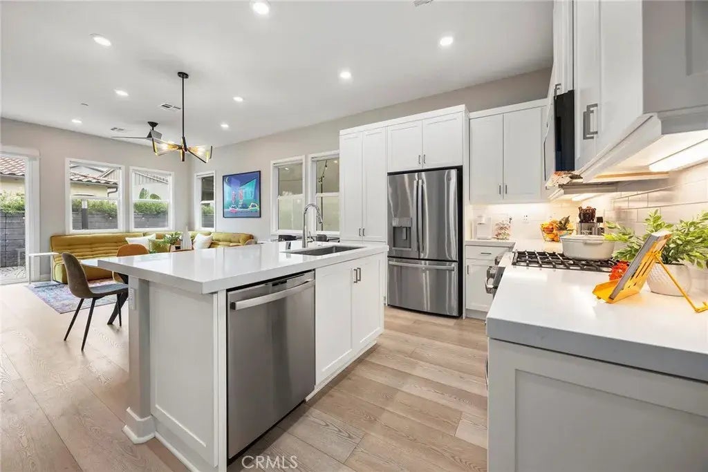 Welcome to 748 Sunrise Road, where modern comfort meets resort-style living in the vibrant 55+ Gaviln enclave of Rancho Mission Viejo. Tucked away in the award-winning village of Rienda, this beautifully maintained single-level home is designed for those who appreciate thoughtful design, stylish finishes, and a sense of community. Step inside to discover a light-filled open floor plan featuring 2 bedrooms and 2 bathrooms, all wrapped in the warmth of luxury vinyl flooring and custom shades. The heart of the home is the chef-inspired kitchen, equipped with sleek stainless steel appliances, quartz countertops, and generous cabinetry, ideal for whipping up meals or entertaining friends and family. A central dining area seamlessly bridges the kitchen and living room, offering the perfect setting for dinner parties or cozy nights in. The living area is equally inviting, ideal for morning coffee, afternoon reading, or watching your favorite show in comfort. The primary suite is a true retreat, complete with an upgraded ensuite bath showcasing an oversized shower, designer lighting, and a walk-in dressing room enhanced by a stylish barn door. Outside, your private backyard oasis awaits, featuring low-maintenance turf, custom pavers, ambient bistro lights, and a peaceful side yard, perfect for sunset dinners or sipping wine under the stars. Leased solar panels keep your energy costs low, and the two-car garage comes with upgraded storage to make organization a breeze. As a Gaviln resident, youll enjoy private access to The Perch, a luxurious clubhouse with a lap pool, spa, BBQs, ca