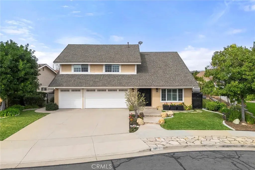 Nestled in a quiet cul-de-sac of Placentia, this exquisite 4-bedroom, 2.5-bathroom home offers 2,577 sq. ft. of beautifully designed living space on a 7,222 sq. ft. lot. From the moment you step through the elegant iron front double doors, you'll be captivated by the designer paint, thoughtful upgrades, and an inviting floor plan designed for both comfort and style. As you enter, youre welcomed by a light and bright spacious living room and formal dining room with plantation shutters, perfect for entertaining or hosting gatherings. The heart of the home is the gourmet kitchen, featuring stainless steel appliances, oversized island with counter seating, a wine fridge, recessed lighting and an abundance of cabinetry. The kitchen seamlessly flows into the spacious family room, complete with a cozy fireplace and built-in deskideal for work or study. A downstairs powder room and an inside laundry room add to the homes convenience. Upstairs, the primary suite is a private retreat, boasting a sitting area, a spa-like ensuite with dual sinks, walk-in shower, soaking tub, walk-in closet, and an additional wall closet. Three additional secondary bedrooms and a full bathroom provide ample space for family, guests, or a home office. A pull-down attic ladder offers easy access to additional storage. Step outside into your private backyard oasis, where relaxation and entertainment await. Enjoy the sparkling pool with waterfalls, soothing spa, and a grassy area perfect for play or pets. The cabana with an aluminum roof and built-in BBQ creates the ultimate outdoor gathering space. Additio