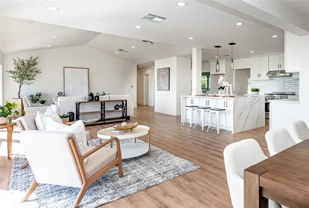 Beautiful single-story Mid-Century home with city-light view located in the prestigious neighborhood of Raymond Hills in Fullerton. Largely remodeled, very recently renovated home has great curb appeal with circular driveway. This home features a south-facing living room with many window and an abundance of natural light. Wood flooring, recessed light, and fresh paint throughout. Spacious bedrooms. Remodeled kitchen boasts an island with quartz waterfall countertop, pantry area, six burner stove, quartz counter tops, and brand new appliances. Dining area with lovely statement wooden accent wall. Separate laundry room with sink, located inside the home. Completely remodeled bathrooms, with double sink in master bathroom. Living room opens to a backyard with views of Disneyland fireworks and mountains. Very spacious 2-car garage. Close to Downtown Fullerton, St. Jude Hospital, Cal State Fullerton, shopping centers, Amtrak station, and more.