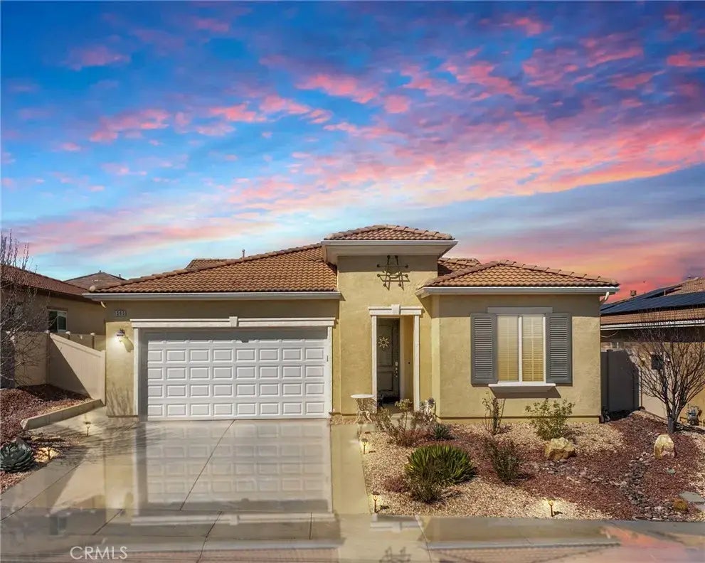 Welcome to the Four Seasons 55+ community, nestled in Beaumont, renowned for its breathtaking mountain views. This exceptional single-level home, built in 2017, is situated in a vibrant community that offers an array of luxurious amenities. The property features a low-maintenance front yard and an inviting, entertainer-friendly backyard. Step inside to discover vinyl flooring, plantation shutters, and ceiling fans, contributing to a comfortable and stylish living environment. The open-concept floor plan is both spacious and light-filled, ideal for modern living. The generously sized kitchen island serves as a central gathering space, offering ample storage and a perfect setting for family and friends. Enjoy the sleek stainless steel appliances, a walk-in pantry, and a stunning ocean-colored backsplash that complements the light quartz countertops. The living and dining areas seamlessly flow together, creating an expansive and welcoming atmosphere. The primary bedroom is a serene retreat, bathed in natural light and conveniently located near the luxurious en-suite bathroom. This spa-like bathroom includes a walk-in shower, a soaking tub, and dual sinks for added convenience. Adjacent, the expansive dressing room provides organized space for both hanging and folded clothes. The guest bedroom is equally inviting, featuring a full bathroom with vinyl flooring and plantation shutters. The third bedroom is designed with double-door entry, a ceiling fan, and plantation shutters, offering flexibility for various needs. Step outside to the newly installed patio cover with overhead f