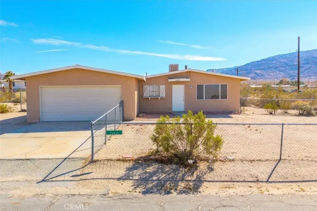 Charming corner home in a quiet area of 29 Palms. House has been maintained and shows pride of ownership. This home is located on a large corner lot near route 62 (29 Palms Hwy) with room to park an RV, desert toys or to expand. A spacious living room with tile flooring and a large window taking advantage of mountain and city views. Large dining area off the kitchen with tile flooring and a sliding glass door leading to the rear fenced backyard. 2 spacious bedrooms with a centrally located bathroom. The kitchen is bright with plenty of cabinet space. There is an attached double garage with plenty of space for storage. large lot size. Great starter or investment home being close proximity to base and Joshua Tree National Park. Some pictures have been virtually staged