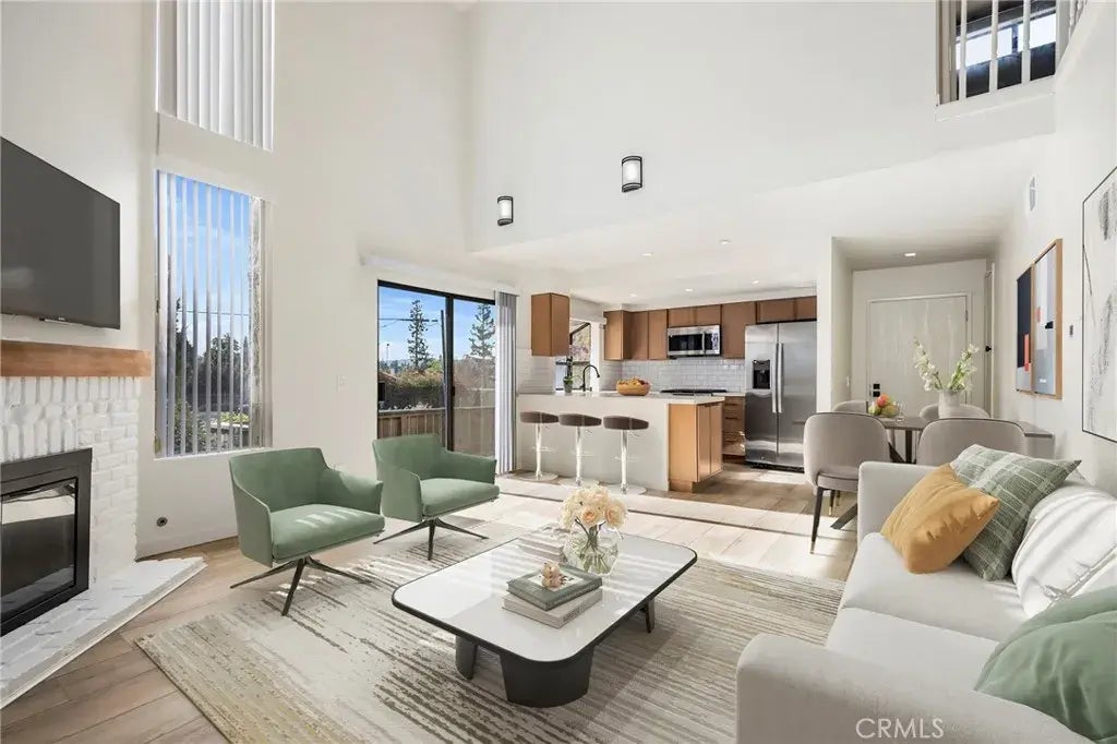 BACK ON MARKET DUE TO BUYER NOT BEING ABLE TO PERFORM. Stunning, Fully Renovated Townhouse-Style Condo with Mountain Views! Welcome to this beautifully renovated 2-bedroom, 2.5-bathroom home that combines modern luxury and comfort, offering an ideal blend of style and functionality. From the soaring vaulted ceilings to the serene mountain views, every inch of this home has been thoughtfully upgraded for a truly elevated living experience. The spacious kitchen is a chef's dream, featuring brand new white oak cabinetry, sleek E Quartz countertops, and all-new stainless steel appliances, including a refrigerator, stove, dishwasher, and microwave. Recessed lighting throughout the home enhances the open, airy atmosphere, while two skylights flood the space with natural light. The expansive living room boasts a cozy fireplace, perfect for chilly evenings, while the new luxury vinyl flooring runs seamlessly throughout the home. Enjoy the ground-floor patio and take in the breathtaking hill views the perfect spot to relax and unwind. Both bedrooms offer large closets and private balconies with stunning mountain views, with the primary suite featuring its own en-suite bathroom and ample storage. Renovated bathrooms throughout feature new quartz counters, modern vanities, and recessed lighting, adding an extra touch of sophistication. Enjoy the convenience of a 2-car garage, a brand new water heater, and a washer and dryer included. Central air conditioning and heating ensure year-round comfort. Community amenities include a refreshing pool, spa, and clubhouse perfect for entertain