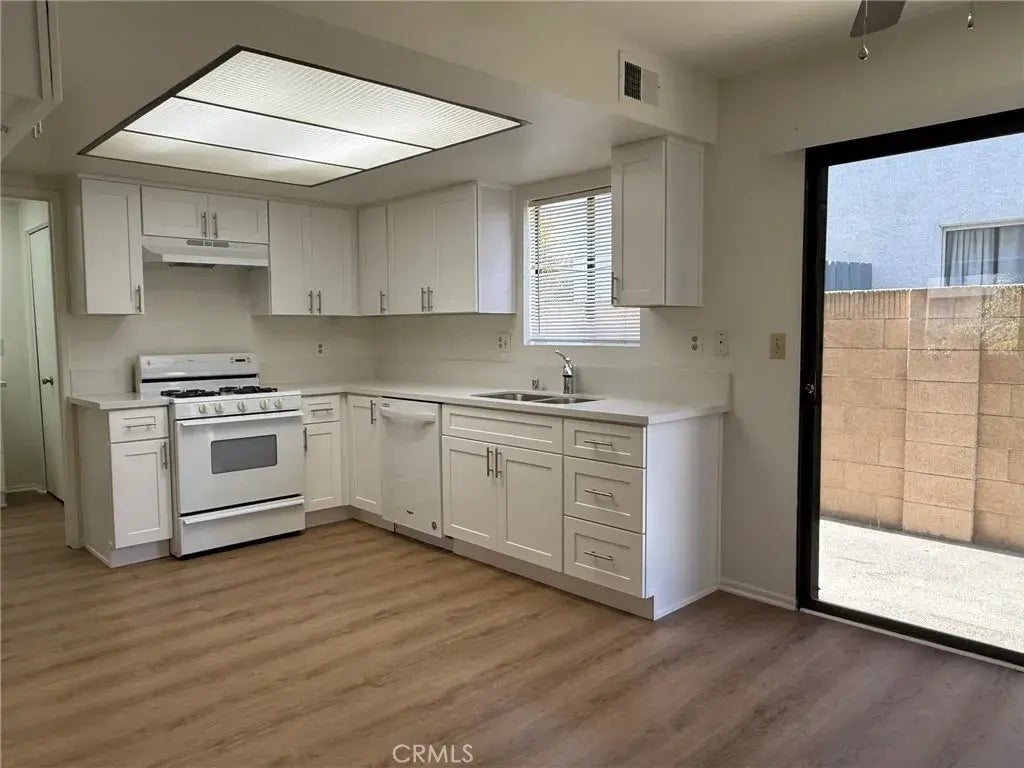 Remodeled & move in ready! This 2-story, 2-bedroom home features a remodeled kitchen and bathrooms with quartz countertops, new vinyl flooring downstairs, and fresh interior paint. The vaulted stairway adds an open feel, and the spacious bedrooms offer plenty of comfort. You'll be welcomed home to a beautiful courtyard with a fountain. Includes 2 assigned parking spaces and your own laundry room. You have top-rated schools plus great shopping and dining options. Immediate move-in available!