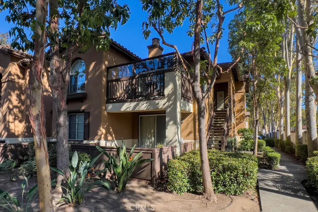 Welcome to this exquisite two-bedroom upstairs, end-unit in the highly desirable Rancho Veracruz community of Tustin Ranch, complete with a 2-car garage! Step into a light-filled living space, where soft grey walls and crisp white crown molding set a sophisticated tone. The spacious living room is flooded with natural light, enhanced by chic shutters, a cozy gas fireplace, and a sliding glass door that opens to your private balconya perfect retreat for morning coffee. Entertaining is effortless in the charming dining room, where vaulted ceilings and a stylish chandelier create a warm ambiance that flows seamlessly into both the kitchen and living room. The kitchen features a long breakfast bar, ample cabinetry, a coffered ceiling with crown molding, and modern recessed lighting. Across the hall, you'll find a convenient laundry closet with side-by-side washer and dryer hookups tucked behind classic shuttered doors. Both bedrooms are luxurious suites, each with its own walk-in closet and private bathroomideal for hosting guests or creating a dedicated office space. The primary suite is a serene escape, featuring a ceiling fan, a roomy en-suite bathroom with ample countertops, elegant cabinetry, accent lighting, and a large tub/shower combo with a sliding glass door. The secondary suite also boasts vaulted ceilings, a walk-in closet, and its own full bathroom with another tub/shower combo. Step out to your sizable outdoor balcony, offering plenty of room for seating and a BBQ setup. Living in Rancho Veracruz means enjoying resort-style amenities, including two sparkling pools