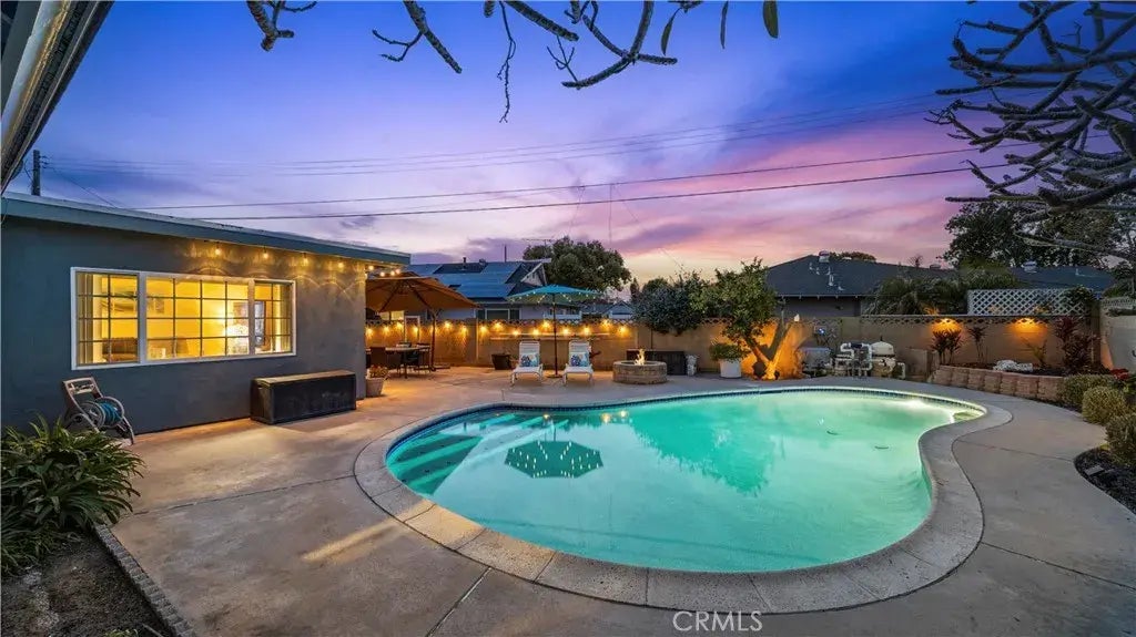 Discover timeless elegance in this captivating 1,833 sq. ft. single-story pool home, perfectly positioned on a generous 7,120 sq. ft. lot on a peaceful cul-de-sac in one of the area's most desirable neighborhoods. This 4-bedroom, 2-bathroom residence welcomes you with its inviting charm and spacious design, offering a blend of comfort and endless possibilities. The well-maintained layout includes a bright, formal living area and generous bedrooms. Step outside to your private backyard oasis, where a sparkling pool and multiple patios set the stage for unforgettable outdoor gatherings. With its prime location, you are minutes away from the Honda Center, Angels Stadium, and Disneyland!
