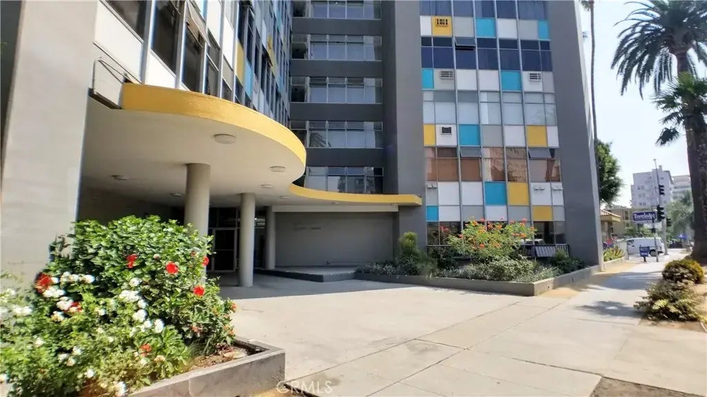 Located in the East Village Arts District of Long Beach, the Royal Palms is an 11-story co-op building built in 1958 and is home to 163 units. The property offers the best of downtown living with chic cafes, shops, and dining, as well as the benefit of the breezy beach lifestyle with a short walk to neighborhood Shoreline Village, Rainbow Harbor, and The Pike. Unit #216 is a 2nd-floor condo unit boasting newer laminate flooring, curtains at each window, and a spacious living area. The unit feels larger than the already generous 600 square feet with huge windows overlooking the neighborhood and a modern, bright paint scheme. The kitchen has been newly remodeled and features white shaker cabinets, quartz counters, and comes fully equipped with a stove, oven, dishwasher, and microwave. A large breakfast counter and tons of cabinet storage make the kitchen very practical as well as beautiful. The main living room connects to the upgraded bathroom that features a vanity sink & mirror and upgraded fixtures & flooring. The spacious bedroom boasts a remote ceiling fan, large windows, and a huge wardrobe closet that extends from floor to ceiling. Other amenities include key-controlled building entry, on-site laundry, a wading pool, and a lounge area. Small pets are considered.