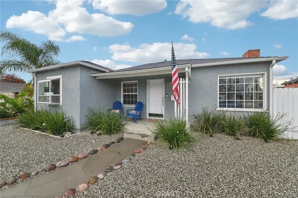 Charming and beautifully upgraded, this 1941 bungalow offers two bedrooms and a fully owned 7.9kw solar system. This home has been completely remodeled. The inviting living room is filled with natural light and boasts a cozy fireplace with orginal wood flooring. The kitchen features vinyl flooring, cabinets and stainless appliances. A cozy eating area, and an adjacent indoor laundry room for added convenience. The bathroom has been updated with a new vanity. Step outside to the enclosed backyard, where a covered patio creates the perfect space for entertaining. The yard has drought-tolerant landscaping in the front, with concrete and turf in the back for easy maintenance. The property also includes a spacious 600 sq. ft. detached alley facing garage with parking for two cars, plus storage roomoffering excellent ADU potential. There are parking spaces for two additional vehicles. One space is fenced in perhaps for a camper trailer or additional storage. No HOA! Situated in a prime location near the Anaheim Packing House, Pearson Park, and the Center Street Promenade, with easy access to the Fullerton Train Station. Updates include: Brand new roofing, solar, 200amp panel/subpanel, and AC unit. Furnace, ducting, water heater, garbage disposal, washer, dryer, and refrigerator less than 5 years old. Garage has 50amp electric vehicle receptacle.