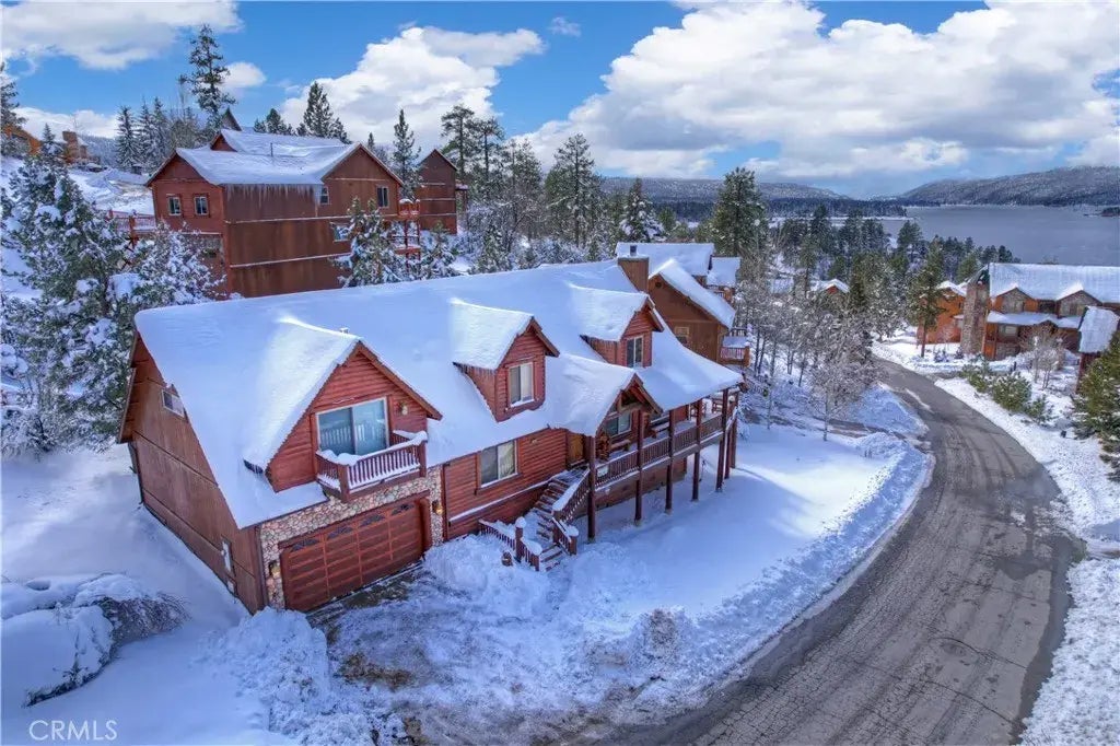 WELCOME TO VISTA RIDGE, A CUSTOM-BUILT LOG-SIDED HOME STRATEGICALLY NESTLED IN HIGHLY COVETED CASTLE GLEN ESTATES ~ Step into the inviting open great room, adorned w/ knotty pine tongue & groove ceilings, a striking floor-to-ceiling river rock fireplace, & an open kitchen designed for seamless entertaining ~ Enhanced by rich knotty pine features & log accents throughout, this home exudes a warm & welcoming ambiance ~ The kitchen boasts stainless steel appliances, granite slab counters, knotty pine cabinetry, & a spacious center island perfect for casual meals ~ With four bedrooms plus a loft, there's ample space for everyone to enjoy ~ Upstairs, the primary suite offers an adjoining bathroom, a gas fireplace, & a private balcony accessed through a slider ~ A delightful open loft w/ a pool table & dry bar adds to the entertainment options ~ Embrace the breathtaking views from the expansive side deck or retreat to the back deck for a barbecue or a relaxing soak in the hot tub after a day on the slopes ~ The oversized two-car garage provides ample space, large enough to accommodate a boat ~ This mountain retreat seamlessly blends luxury & comfort & is centrally located to all the attractions Big Bear has to offer ~ Currently utilized as a second home & vacation rental in a short-term rental-friendly neighborhood ~ Experience the epitome of mountain living at Vista Ridge!