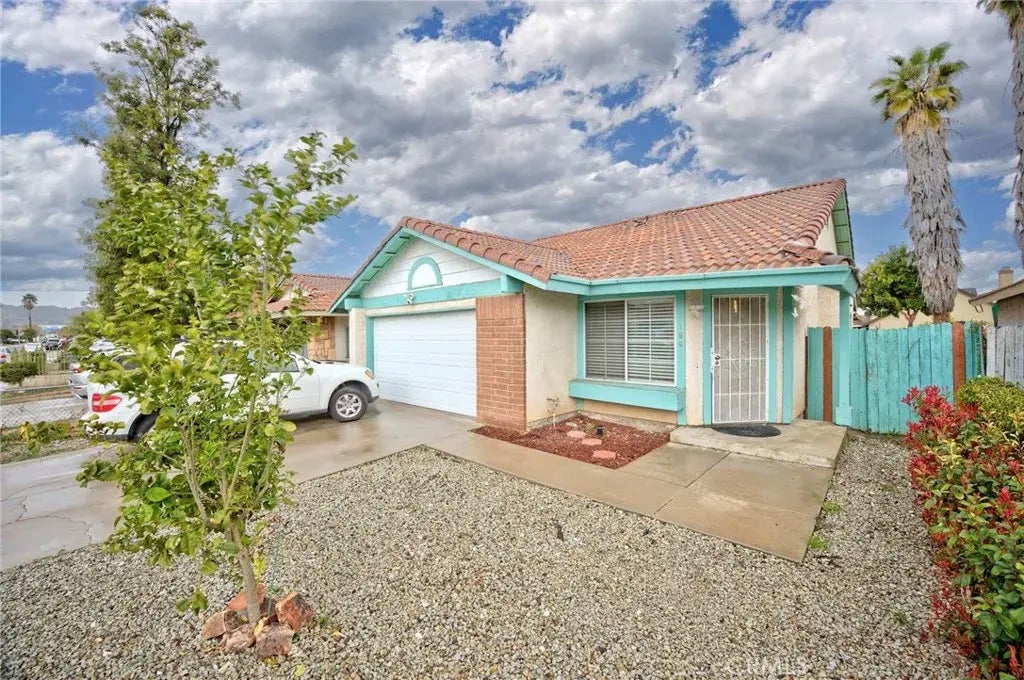 Lowest Priced Single Family Home in the Area: Welcome to the Trophy of the Neighborhood at 190 Oak Tree Drive, a stunning two-bedroom, two-bathroom home in the heart of Rancho Las Perris. This 888-square-foot residence features sleek laminate flooring, scraped ceilings, cathedral ceilings, and a Newer efficient air conditioning unit. Aluminum windows with blinds bring in natural light, creating a bright and airy space. The kitchen offers tile countertops, wood cabinets, a fridge, dishwasher, built-in microwave, and a four-burner gas stove. The dining area has a sliding door with blinds that open to the backyard. Both bathrooms are upgraded, with the primary bath featuring a walk-in shower and tub combo. The primary suite has an open closet, high ceiling, and a slider leading to the yard. The fenced backyard includes a covered patio and organic fruit trees, perfect for relaxation. The two-car garage offers direct access, a washer and dryer, and a water heater. Located within Walking Distance of the Newly Opened Copper Creek Park and Close to Shops and Schools, this Home is a Rare Find. Call today for a private tour before it is gone.