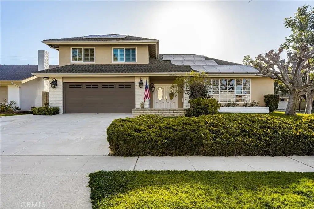 Welcome to 2021 Millwood St! This stunning two-story home is located in the highly sought-after Meredith Parkwood community, within the award-winning Tustin Unified School District. Offering 4 spacious bedrooms and 3 well-appointed bathrooms, this home spans approximately 2,500 square feet of beautifully designed living space. As you step inside, you'll be greeted by a bright and open living and dining room combo featuring rich hardwood flooring. The remodeled kitchen is a chef's dream, complete with cherrywood cabinets, sleek granite countertops, 18x18 tile flooring, and an impressive array of high-end features, including an in-island refrigerator, integrated wine cooler, gas and conventional ovens, microwave, and ample cabinet storage. The kitchen is also equipped with a double sink and recessed lighting, creating a perfect space for both cooking and entertaining. Adjacent to the kitchen, the cozy family room boasts a gas log fireplace, with a TV mounted above the mantel, creating a perfect spot for relaxation and entertainment. The Sono's surround sound system enhances the experience, and the sliding door with remote control drapes offers convenience and privacy. On the main floor, you'll also find a bedroom and bathroom, providing ideal flexibility for guests or home office use. Upstairs, you'll discover three additional bedrooms, including the master suite. The master bedroom offers a large walk-in closet and an ensuite bathroom, creating a private retreat to unwind in style. Step outside to the expansive covered patio and sparkling swimming poolperfect for those hot C