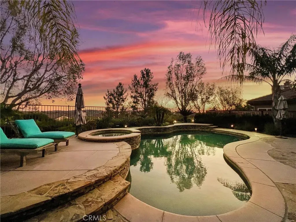 This Incredibly Beautiful Home, complete with a Resort-Style Pool, Spa and spectacular Views, is a Must-See! Located in the scenic rolling hills of Serrano Heights, the final prime location in the hills of Orange, is the popular and versatile Plan 2 of Bella Vista, built by KB Home. Ideally situated and does not back onto Serrano Ave. This impeccable residence spans nearly 2,525 sq. ft., showcasing thoughtful design and exceptional craftsmanship impresses at every turn. From its striking architectural details to its inviting ambiance, this home truly stands out. Featuring 3 Bedrooms, a versatile loft currently used as an office, and 2.5 Bathrooms, this home exudes both comfort and charm. The grand entrance makes an unforgettable statement with its soaring ceilings, an abundance of windows that provide plenty of natural light and polished ceramic tile floors that transition seamlessly into the formal living and dining areas, ideal for hosting gatherings. At the heart of the home is the gourmet kitchen, a chefs delight with granite countertops, a center island, stainless steel appliances, a built-in refrigerator, ample cabinetry, and a cozy breakfast nook. Adjacent to the kitchen, open to a perfectly sized family room, flooded with natural light from large windows that capture beautiful views. Complete with a cozy fireplace and pre-wired for surround sound, it's the perfect space to relax or entertain. The master bedroom suite is a tranquil retreat with sweeping views, a double-door entry, a walk-in closet and an additional closet, along with a spa-inspired en suite featuring