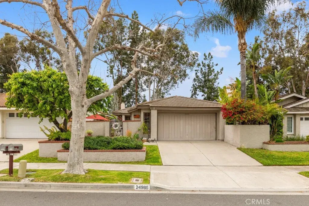 Welcome to this exquisite 2-bedroom, 2-bathroom single-story home located in the intimate, Sunset Place community, which features fewer than 70 homes, ensuring a sense of privacy and exclusivity. The home boasts a welcoming front courtyard, offering a charming entryway to the property. Inside, the spacious living room with vaulted ceilings creates an airy, open atmosphere, a fireplace and slider that frames the serene backyard and stunning tree-top views, bringing the beauty of nature right into your living space. The master suite offers a peaceful retreat with a sliding door leading to the back patio, where you can enjoy the tranquil view of the patio and tree tops. It too offers high ceilings and closet space abounds. There is also a second bathroom and bath. Sunset Place residents also enjoy access to a community pool and spa, making it easy to unwind and relax. Ideally located in central Laguna Hills, this home is just minutes away from top-rated schools, shopping, dining, and convenient commuting options. With its private setting, amazing views, and great community, this home is truly a MUST SEE!
