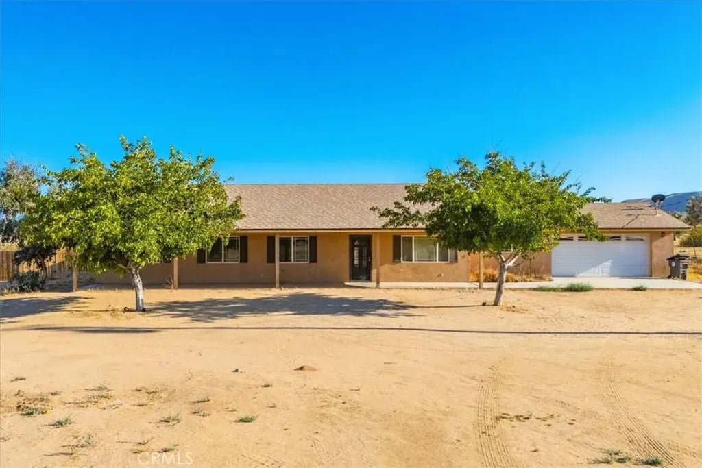 Welcome to your desert oasis in Yucca Valley's peaceful Yucca Mesa area! This nearly one-acre property features a charming 3 bedroom, 2 bathroom home with an attached garage. The interior boasts beautiful tile and carpet floors throughout, and the spacious kitchen is equipped with generous granite countertops, a gas range, and a dishwasher. The master suite is a retreat of its own, complete with a large walk-in closet, a cozy office/reading nook, and a master bath showcasing etched glass shower doors and a stylish mirror. The living room offers a warm and inviting space with a fireplace, perfect for those chilly winter evenings. Enjoy the outdoors with patios at the front and rear of the home and an enclosed breezeway ideal for a game room or extra living space. The property is fully fenced, providing privacy and security for your family. Experience the relaxed high desert lifestyle with beautiful nights and breathtaking views, right outside your door. Discover the natural wonders of nearby Joshua Tree National Park, renowned for hiking and rock climbing. Explore local dining at charming eateries, boutique shopping, and art galleries in downtown Yucca Valley. This property presents a unique opportunity to embrace the serene beauty and tranquility of desert living. Don't miss your chance to make this desert retreat your own and enjoy all that Yucca Valley has to offer.