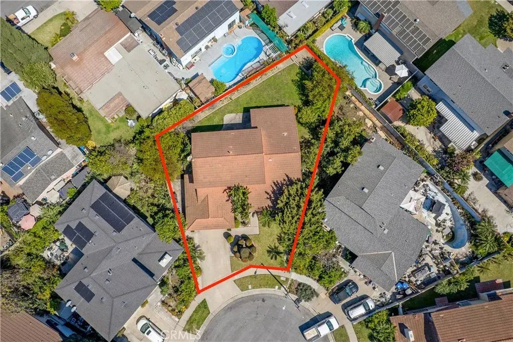 Welcome to this stunning 4-bedroom, 2-bathroom home, offering 2,269 sq. ft. of living space on a 7,592 sq. ft. lot. Nestled in a private cul-de-sac, this two-story beauty boasts a thoughtfully designed floor plan, perfect for families and entertainers alike. Step inside to discover a large, open living room featuring a cozy fireplace, ideal for relaxing evenings. The spacious kitchen is a chefs dream, complete with an extra-large island, ample counter space, and plenty of storage. Enjoy the convenience of one bedroom and a full bathroom downstairs, perfect for guests or multi-generational living. Upstairs, you'll find oversized bedrooms with spacious closets, providing comfort and storage for everyone. Outside, the wrap-around backyard is a true oasis! Surrounded by lush landscaping, this private retreat features a citrus lemon tree, pomegranate tree, and a variety of other fruit treesa gardeners paradise! Don't miss this incredible opportunity to own a spacious, well-maintained home in one of Anaheims most sought-after locations. Centrally located near Disneyland, the Anaheim Convention Center, Knotts Berry Farm, and with easy access to the 5 Freeway, this home offers both comfort and convenience. This home provides the rare opportunity for anyone to design their dream home.