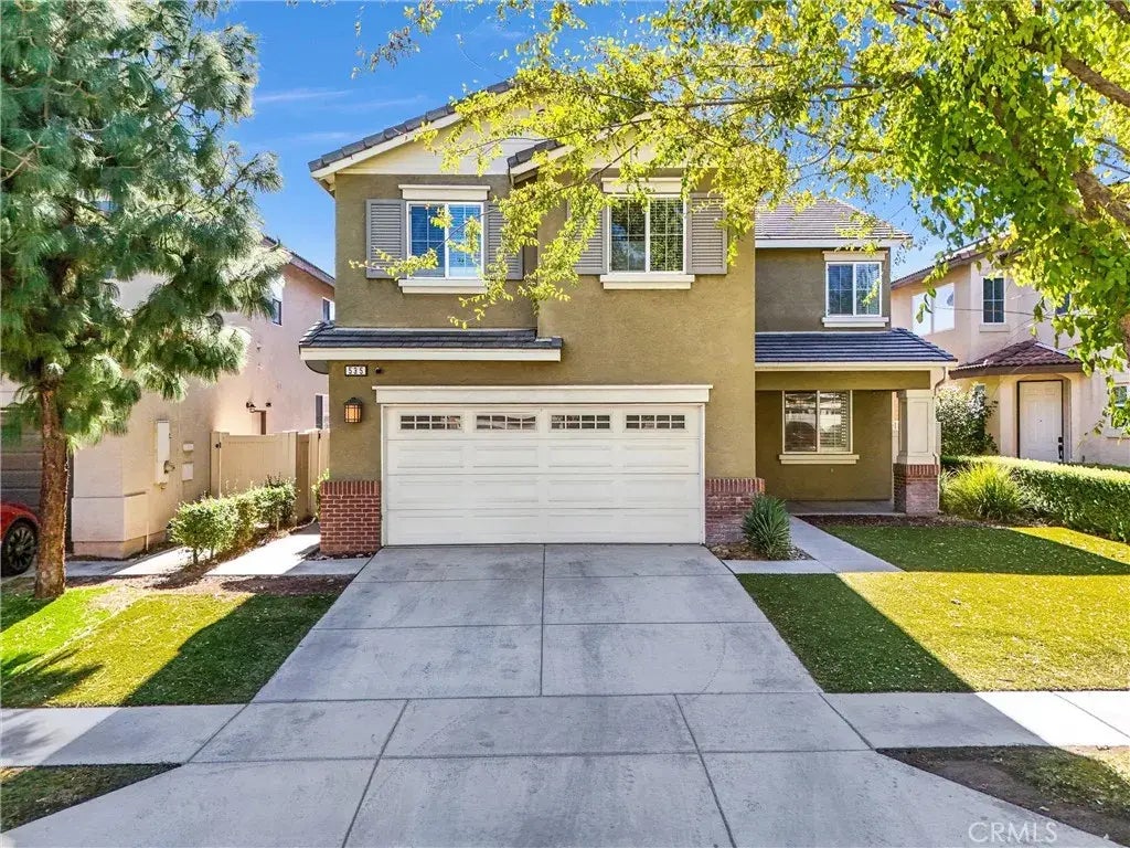 Welcome Home to West Elm Park Gated Community! Step into this turnkey residence where modern elegance meets comfortable living. Nestled in the coveted West Elm Park Gated Community, this home boasts a spacious cheerful interior and natural light streaming through numerous windows. The open floor plan is perfect for family gatherings and entertaining, featuring a spacious open concept kitchen and family room with with plenty of cabinets and a generous eating area. Beyond, the large living room invites relaxation with warm fireplace, recessed lighting and a thoughtfully designed recessed alcove perfect for your TV screen. An inlaid wood laminate floor accent adds a touch of sophistication. Convenience is key with a half bathroom downstairs near the entry from the attached two car garage. Upstairs, you'll find newer carpeting throughout. The expansive Primary Master in-suite offers a serene sitting area and leads to a spa-like Primary bathroom, complete with a like-new shower enclosure, a relaxing tub, and his-and-hers vanity sinks. Ample wardrobe closets ensures you to have plenty of storage space. The perfect loft area is versatile and can be used as an office, playroom, or TV lounge. Additional features include a full-bathroom upstairs with a double sink and a pristine tub/shower enclosure. and a charming patio area perfect for barbecues and relaxation. Elm Park community offers a VERY LOW HOA that provides a pool/spa, community bathrooms, playground, large grass area, and basketball court. Conveniently located within walking distance to Eisenhower High School, minutes from