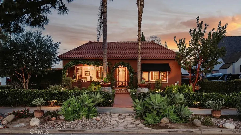 Welcome to the Woitke House, a stunning 1928 Spanish Revival home in the sought-after Washington Square neighborhood of Santa Ana. This MILLS ACT-designated property is listed on the historic registry, offering significant tax savings while preserving its timeless charm. Nestled on a picturesque corner lot, this home boasts an award-winning yardwinner of Santa Anas Best Yard 2021 and a featured property on the Mary Lou Heard Home & Garden Tour. The thoughtfully designed outdoor spaces create a true Southern California oasis, complete with two charming shaded porches, an outdoor living space with a fountain, and lush landscaping that enhances the homes serene ambiance. Inside, the home blends historic character with modern upgrades. The light-filled living spaces feature original oak floors, beautifully arched entryways, and a faux fireplace with intricate tile detailing. The remodeled kitchen showcases striking granite countertops and backsplash, custom cabinetry, and a breakfast bar that seamlessly connects to the dining area. Additional upgrades include a new roof, new copper piping, updated electrical, surround sound system, and abundant natural light streaming through the home's large windows. The upgrades and accolades are endlessthis home represents true pride of ownership with unparalleled attention to detail. From its preserved architectural charm to its thoughtfully curated improvements, this is a rare opportunity to own a historic masterpiece in one of Santa Anas most cherished neighborhoods.