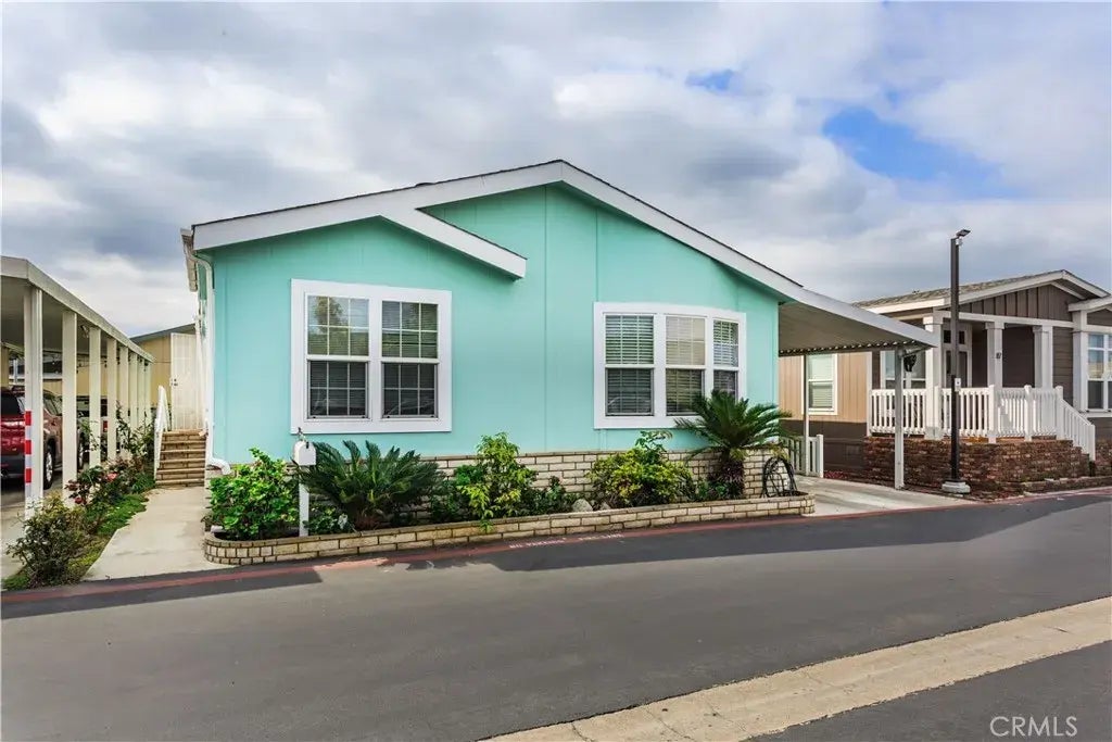 Great Opportunity to own this beautiful mobile home! Built in 2005 Oak manor Double wide Home in the distinguished area of Anaheim Mobile Estates. Featuring 1,568 sq ft this house is owned by the original owner!! With 3 Bedrooms, 2 baths and an additional BONUS ROOM that can be used as a EXTRA BEDROOM making it a total 4 BEDROOMS, It is perfect for a family looking for extra room space. Upon entering, you are greeted by an expansive open floor plan accentuated by soaring cathedral ceilings and a COZY FIREPLACE. The spacious kitchen is both functional and stylish, featuring a charming breakfast nook, formal dining area, a gas stove, and an abundance of cabinetry. The Kitchen island featuring its own sink enhance the space, making it a delightful setting for culinary adventures. The spacious master suite serves as a tranquil retreat, complete with a built-in wall bonus room ideal for a home office and a private master bath featuring a separate shower, SOAKING JACUZZI and two vanity sinks. The bedrooms, each on the opposite side of the house offer generous closet space and a restful atmosphere. The Hall bath features a skylight for natural lighting and a bathtub. Both double glazed sliding and double hung windows are featured throughout the house. The convenience of an inside laundry room with full-size washer and dryer adds to the home's practicality. The house has an outside 6'x8' shed with electric lights and receptacles offering extra storage space. The Carport can accommodate up to 3 vehicles and there is additional marked guest parking throughout the park. This home has