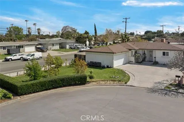 Single story home, located in Cul de sac with 3 bedrooms and 2 baths home, wood floors thru most of the home, laminated flooring in kitchen and dining room with a chimney to warm those cold days. Living room with fireplace and recess lighting. Hallway bathroom has been updated, all bedrooms with ceiling fans. Two car garages with a wide driveway to park additional cars, laundry hook ups in the garage. In Garden you will find a shed storage, green garden with Banana, avocado, lemon, tangerine, orange and other fruit trees. On the side of the house, there is extra green garden space with more fruit trees and flowers. Large back yard and cover patio. This home has one of the largest lots in the neighborhood. Well, stablish neighborhood, good access transportation, stores and restaurants.