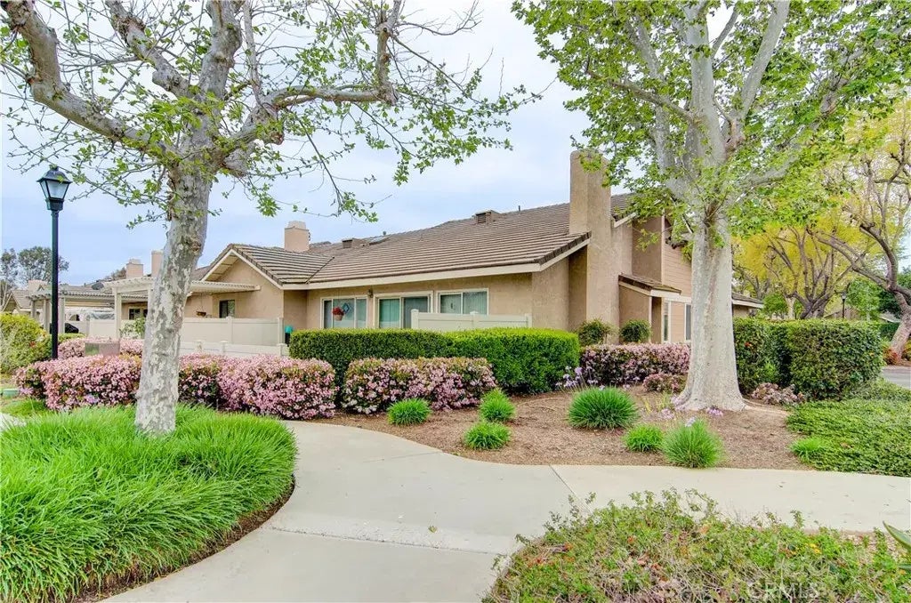 Location, location, location! Fantastic purchase opportunity on this spacious single story 3 br 2 ba home located in the beautiful "Meadowood" community in Yorba Linda. Most coveted location within the community facing the vast greens. End unit with direct access garage and a full driveway. Tile roof, spacious living room with fireplace and vaulted ceilings, dining area with vaulted ceilings, bright living area with windows & sliding glass doors facing the vibrant greens and foliage, tile entry floors, kitchen remodeled with newer cabinets, updated countertops & custom tile backsplash, forced air heating and central air conditioning, primary bedroom with vaulted ceilings, walk-in closet and newer sliding glass doors leading to a private patio, primary bath with dual sink vanity and tiled floors, second bedroom with wood laminate floors & mirrored closet doors, 3rd bedroom (no closet) currently being used as a den/office, large patio area off the living/dining room with unobstructed views of the lush greens, inside laundry room, newer water heater (2023), 2 car direct access garage, water softener, ample guest parking steps from the home, location convenient to popular Placentia-Yorba Linda Unified schools, horse/walking trails, parks and freeways. Don't miss out!
