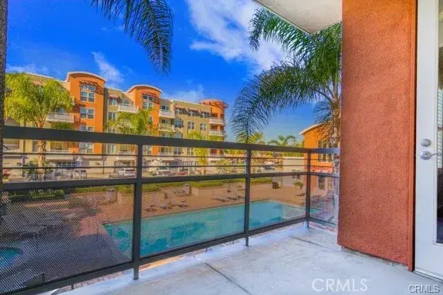 A nice two bedrooms and two full baths condo located in the gated upscale community of the "Commons" complex near Disneyland. The home has hardwood floors from the entryway to the dining room and living room area. The spacious master bedroom has a master bathroom with tiled wall finish and a sliding glass enclosure shower plus a bath tub. The large secondary room has a full size closet and is across the hallway from the secondary bedroom. The kitchen is a functional size and boast granite counter tops and a breakfast counter with a stainless steel refrigerator with samsung French doors. The home has a private balcony over looking the pool that is accessible from the living room and the master bedroom. There are modern pendant lights adorning the ceiling between the kitchen and the dining and living room area. Other upgrades include new paint, new carpet in the rooms, plantation shutters, indoor laundry, trash compactor, microwave, washer and dryer etc. The lifestyle offered by this beautiful home is nothing short of resort style living with amenities that includes a pool, spa, clubhouse, multi purpose room, separate gym/exercise room, gated entry, assigned covered parking spaces etc. The home comes with paid trash, water and gas, and access to all of the facilities included.