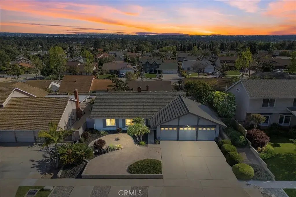 Welcome to this stunning single-level 3-bedroom, 2-bathroom home located in the highly desirable Grissom Park community of Fullerton. Boasting an impressive 1,479 square feet of living space, this property features a spacious 8,372 square foot lot with an incredible unobstructed 180-degree panoramic view overlooking Orange County. Upon arrival, you will be greeted by the home's well-manicured front yard with drought-tolerant landscaping. As you enter the newly painted home, you'll be amazed by the vaulted ceilings that complement the spacious family room, kitchen, and dining room with additional seating space. The family room also features a cozy fireplace perfect for cooler evenings. Two of the three bedrooms are designed with mirrored closets, and the master bedroom offers a bay window overlooking the landscaped backyard and panoramic view. The master bedroom also features an en-suite bathroom with a tile shower with a glass enclosure. This home is fitted with beautiful plantation shutters, dual-pane windows, and ceiling fans to keep the home cool and comfortable during the warmer months. The property features an aluminum shingle roof, ensuring it is sturdy and secure for years to come. The home's backyard is generously sized and professionally landscaped, providing an excellent space for entertaining or relaxing. With the incredible view, evenings offer opportunities to sit in the backyard on a warm summer night and watch the Disneyland fireworks with an unobstructed view. There is also a slatted patio cover on both the back and side yards. The home also features a spaci
