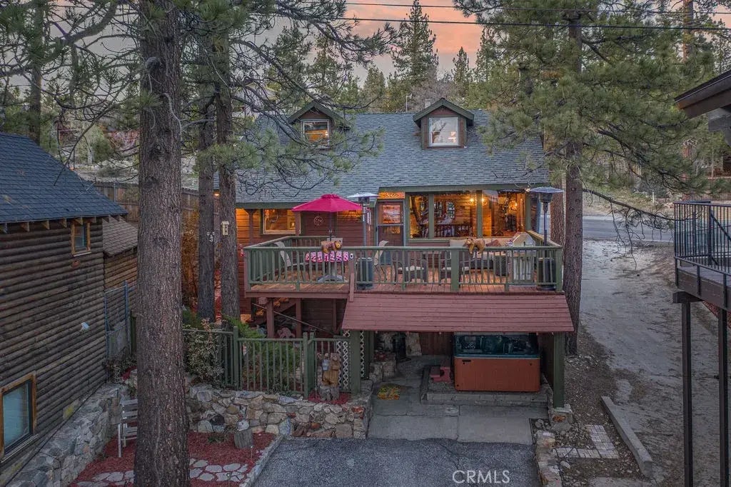 Welcome to the perfect mountain lake escape! Nestled in a serene area of Fawnskin, this charming lakefront home offers stunning views and an idyllic setting that captures the essence of Big Bear Lake living. With a vintage cabin feel and tasteful modern upgrades, this property blends cozy character with comfortable convenience. Inside, youll find a tastefully updated kitchen featuring granite countertops, newer appliances, and upgraded cabinetryperfect for whipping up meals after a day on the lake. The open layout on the main level provides ample space for dining and gathering, complete with a bonus wet bar full of character, making it ideal for entertaining friends and family. Step outside to the spacious deck and soak in breathtaking lake views while enjoying the fresh mountain air. A covered hot tub adds a touch of relaxation, while a large storage area beneath the home offers plenty of room for your outdoor gear and seasonal items. Whether youre looking for a weekend getaway or a peaceful year-round residence, this Fawnskin gem delivers the perfect blend of rustic charm and modern comfort. Dont miss this rare opportunity to own a slice of mountain lakefront paradise - without the high price tag!
