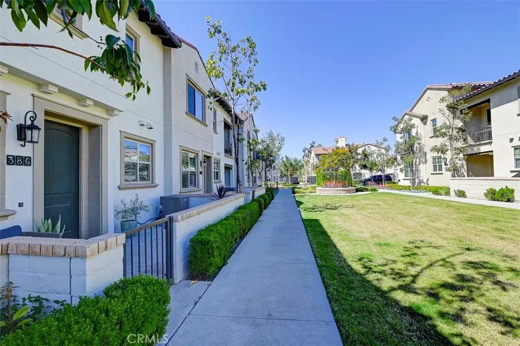Located in the highly desirable Latana @ Beach community, 386 Sunrise Lane is a rare find! Newly built within the last five years by Brookfield Residential, this lovely residence offers a perfect blend of comfort, convenience, and style. This home features an open floor plan, three bedrooms, three baths. A beautiful kitchen with quartz countertops and a tiled backsplash. The large primary bedroom, its oversized bathroom and laundry area are located upstairs. The Bathrooms feature tiled floors/showers and quartz countertops. Direct access from the two-car garage where you'll find the tankless water heater and an EV ready plugin. Enjoy the front patio next to a large green belt that offers both open space and privacy. Take advantage of the pool, cooking areas, playground, and dog park within this well thought out community. Primely located within a short walk to Rodeo39 and all that it has to offer. Easy access to parks and 22/405/605/5 Freeways. A quick drive to Disneyland or the Local Beaches, 386 Sunrise Lane is Truly a Must SEE!