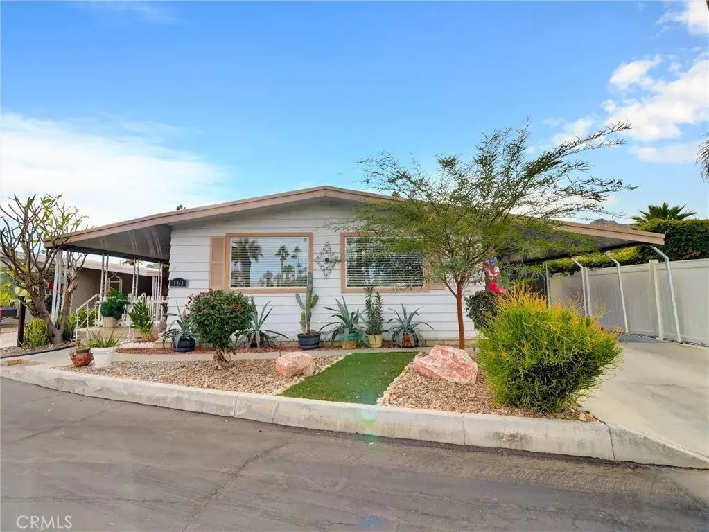 OWNED SOLAR AND NEW ROOF WITH 17 NEW SOLAR PANELS Reduces Your Electric Bill To A Minimal Amount, For This 1776 sq. ft. TRIPLE-WIDE, spacious home providing Two large bedrooms & Two full baths, a large open family room, plus formal living and dining rooms. The open kitchen has newer appliances. The Dedicated laundry room has direct access to the covered two-car carport. The extended front covered patio and Fenced In Rear Yard provides additional living and entertaining areas. The private and secured rear yard is perfect for your dogs to run and play. Some furnishings stay, if buyer would like them. Convenient guest & RV parking are nearby. Provided Amenities in this 55+ gated community include two community pools, enclosed spa, beautiful clubhouse, fully equipped fitness center, tennis/pickleball lighted courts, billiard room and a full schedule of resident activities. El Dorado Palms Estates is conveniently located within walking distance of Trader Joe's, Target, Starbuck's and much more. LOW HOA of only $340/mth, & YOU OWN THE LAND. NO LAND LEASE FEES!! HOA fee covers trash, sewer and water.