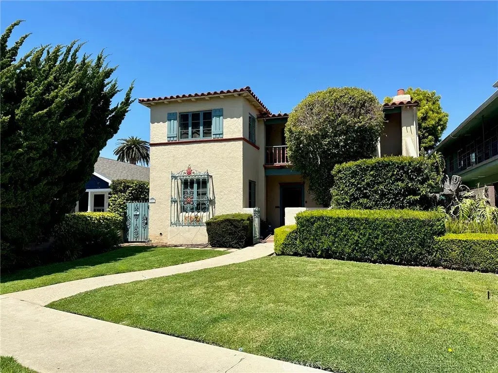 This exceptional vintage residence offers authentic Spanish charm and an ideal location, two blocks to the beach, one block to the cafes and coffee shops on Broadway, and walking distance to Belmont Shore. Built in 1929 and located in the Bluff Park Historic District, the property includes a pool and spa, a laundry facility, and a single-car garage. The available apartment is the upper back unit and features approximately 725 square feet of light-filled living area that includes a large living room with adjacent office nook, a large bedroom with two closets, a full bathroom, a bright and spacious kitchen with adjacent dining area, and a front terrace that serves as a relaxing outdoor dining and seating area. This tranquil apartment looks down on a sparkling pool and spa within a private and serene courtyard area. The apartment has no adjoining walls and no residents living above or below. Up to two cats are allowable (no dogs). The washer and dryer - both pay per use - are located in a laundry facility that is shared with two other tenants.