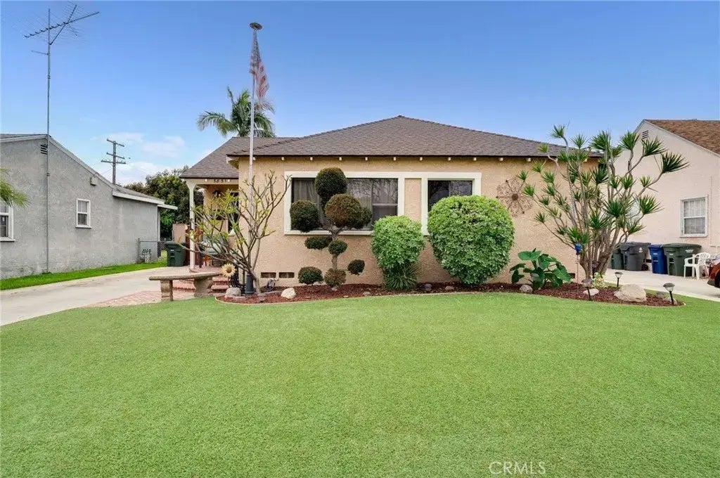 As you step inside, you'll be greeted by the warmth of hardwood flooring, all of which is enhanced by fresh paint throughout. The living room boasts a large picture window, filling the space with natural light, and a separate dining area. The kitchen features beautiful golden wood cabinets, a corner kitchen sink overlooking the backyard, and an inside laundry area. Two nice-sized bedrooms, the primary can accommodate king-sized furniture. You can enjoy the added benefit of a bonus room, perfect for a home office or hobby space. Central air and heat, a larger lot of 5,700 sqft with a block wall offers privacy, easy-care front and back yards, and a long driveway with RV parking. Stephen Foster Elementary serves this home. Mayfair Park and Pool is down the street, and you have several freeways offering easy access.