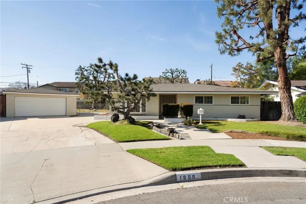 Opportunity awaits at this 3 Bedroom mid-century ranch home in beautiful West Anaheim, on a desirable tree-lined street. This single-story property has been cared for by the same owner for many years. Exterior features include a large pie shaped lot, many mature trees, many of which are fruit bearing and an extended back patio ideal for relaxing and entertaining family and friends. The interior features a large step-down living room with a bay/picture window and a formal entry leading into a large family room area with open beamed ceilings, a skylight, fireplace, and extra space for a bar & dining area. This leads into a pleasantly light and airy kitchen adjacent to a separate pantry/mud room area with a half bath and separate inside laundry and storage room. Completing the floor plan are three generously sized bedrooms including a primary bedroom with oversized closets and an en-suite bathroom, as well as an additional shared hall bathroom with a tub and shower combo. A spacious 2-car detached garage has plenty of storage space and room for a work bench. This home has excellent access to Downtown Disney, public parks, Dad Miller Golf Course, dual zone HVAC, and many restaurants and shopping options.