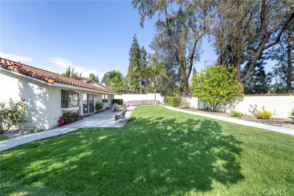 This NEWLY REMODELED single-story, 4-bedroom home in Yorba Linda sits on nearly a -acre lot on a cul-de-sac street in the sought-after East Lake Village community and within a highly rated school district, known for its strong academic performance. Located one block walking distance from East Lake, the property features a spacious front yard with covered front porch, extra wide driveway, and roomy attached two car garage. The large backyard is completely flat and includes a brick-trimmed patio, lawn, and newly paved perimeter walking path suitable for wheelchair access and toddler bikes. The yard has enough space for a substantial-sized pool and custom outdoor upgrades. Inside this FULLY REMODELED home, you'll find vaulted ceilings, fireplace, and plantation shutters. ALL NEW throughout the house is wood-look luxury plank flooring, ample storage cabinetry with quartz counters, a peninsula in the kitchen, and recessed lighting in an open-airy floor plan with family room, kitchen, and owners suite facing the beautifully manicured backyard. The owners suite includes a private, fully accessible bathroom with large walk-in shower. Three additional bedrooms, a centrally located full bath with a tub/shower combo, and indoor laundry room complete the FULLY REMODELED layout. Residents of East Lake Village enjoy access to 3 swimming pools, 3 spas, tennis courts, a private lake with boating and catch/release fishing, walking trails, parks, and a clubhouse.