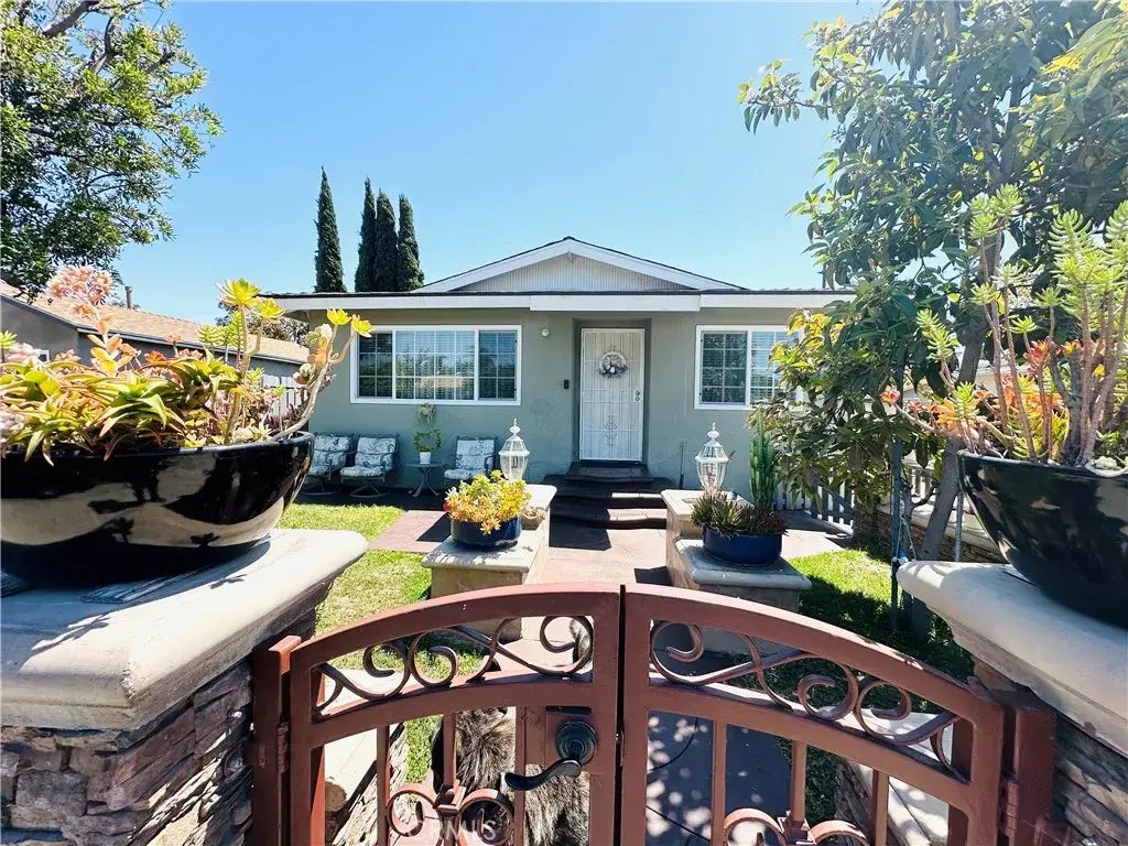 Charming 3-Bedroom, 2-Bath Home This beautifully maintained home offers 3 bedrooms and 2 bathrooms, with the laundry room thoughtfully converted into a spacious third bedroom. The third bedroom enjoys direct access to the second bathroom and a private door leading to backyardperfect for added privacy or potential guest quarters. All bedrooms are carpeted and feature sliding closet doors for a clean, streamlined look. The open floor plan is enhanced by rich, dark wood-style flooring that contrasts beautifully with the freshly painted walls, creating a warm and inviting atmosphere. The kitchen boasts elegant dark wood cabinetry and is accented by a striking white island-style table, ideal for casual dining or entertaining. A long driveway leads to a detached garage, providing plenty of parking and storage, this home offers the perfect blend of comfort, style, and convenience.