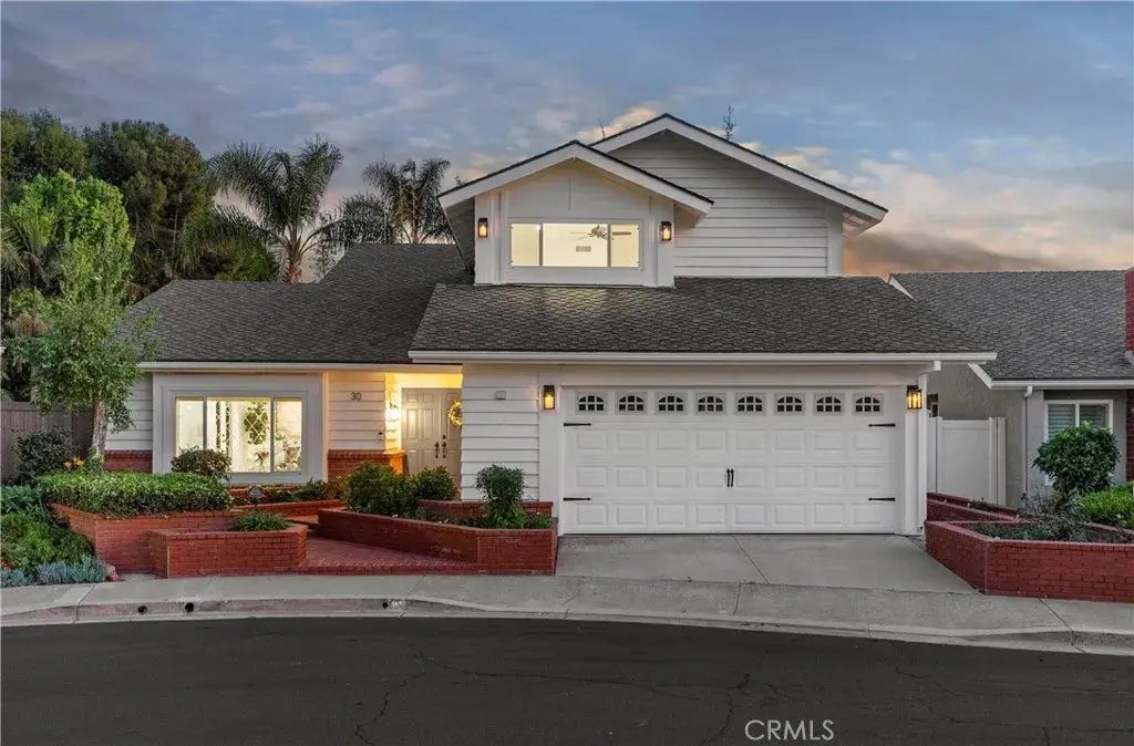 Welcome to 30 Yorktown A Stunning Cul-de-Sac Gem in a Prime Location! Nestled in a quiet and desirable cul-de-sac, this spacious 4-bedroom, 3-bathroom home offers the perfect blend of style, comfort, and functionality.The home features a meticulously landscaped front yard, charming brick planters, and a welcoming entryway that sets the tone for what awaits inside. Step into a bright and airy living space with soaring vaulted ceilings, recessed lighting, and an abundance of natural light pouring in through the picture window. Inside you'll find new luxury vinyl plank flooring, a freshly painted interior, recessed lighting throughout. Continue your way into the beautiful remodeled kitchen. A chef's dream featuring stainless steel appliances, white shaker cabinets, quartz countertops, a striking blue subway tile backsplash that adds a pop of color and visual interest to the kitchen. Built into a niche along the wall, the serving area offers a designated space for platters and beverages as well as offers beautiful decor to the kitchen. Enjoy the convenience of a main-level bedroom and bathroom offering ideal flexibility for guests or multi-generational living. Ascend to the upper level where three generously sized bedrooms await, providing comfort and privacy. The luxurious primary suite is a true retreat, boasting a spa-like bathroom with a spacious walk-in shower, dual quartz vanities, custom tile flooring, a freestanding bathtub for ultimate relaxation and a large walk-in closet. The two additional bedrooms share a beautifully remodeled bathroom with quartz countertops, sty