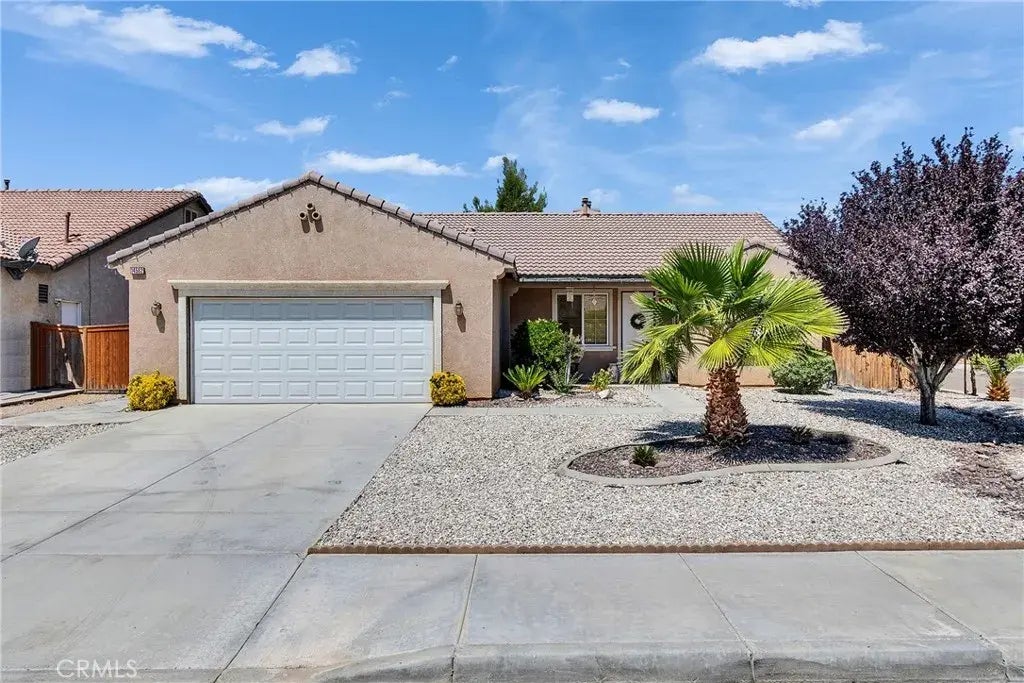 Located in the Victor Valley region of the Mojave Desert, within San Bernardino County, this well-maintained residence is situated on a quiet cul-de-sac in an established neighborhood on Springdale Circle. Built in 2006, the home offers over 1,400 square feet of comfortable living space and features 3 bedrooms, 2 bathrooms, and direct access to a 2-car garage. The interior boasts wood laminate flooring throughout, with a welcoming living room that includes a gas fireplace and a large sliding glass door providing access to the backyard. Adjacent to the dining area, the family kitchen is equipped with ceramic tile countertops, wood cabinetry, and a built-in corner bench with storage for additional seating. Ample natural light flows through the home's windows, all of which are fitted with blinds. The spacious primary suite includes an en-suite bathroom with dual sinks, a soaking tub, a glass-enclosed shower, and a walk-in closet conveniently located nearby. The backyard is fully fenced and features a raised planter bed along the rear of the property, enhanced by mature trees and other established landscaping, creating a serene and private outdoor space. A corner lot with numerous possibilities.