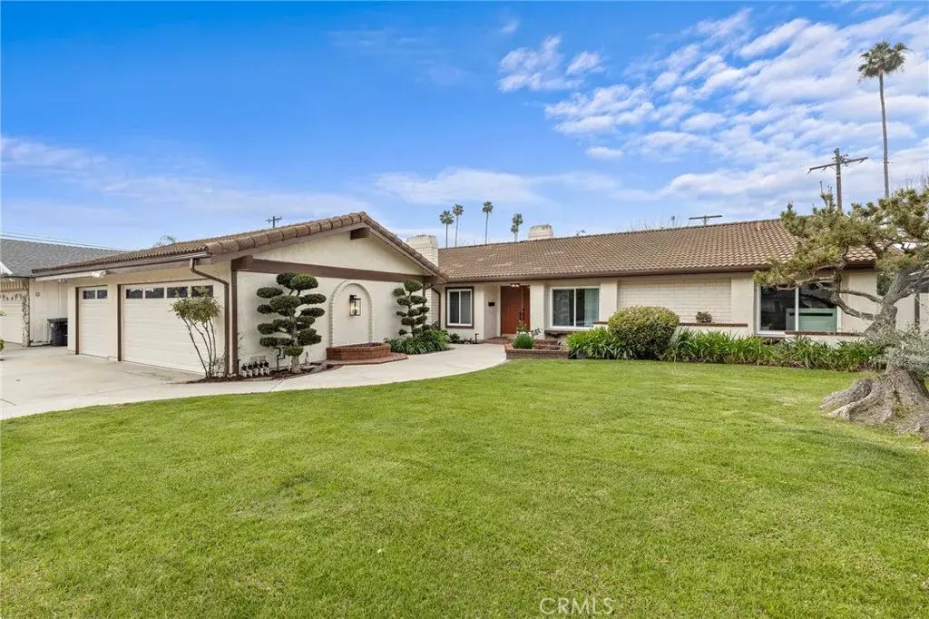 A perfect blend of comfort and elegance in this 2538 square-foot single story ranch style home, which offers exceptional indoor & outdoor living space. The appeal of this completely remodeled ranch style home begins immediately as you approach. The thoughtfully-designed floor plan features stunning upgrades throughout including laminate wide plank flooring, custom baseboards, recessed lighting, a high beamed ceiling in the family room, 2 fireplaces, new interior Craftsman style 2 panel doors with new hardware, and new windows and sliding glass doors throughout the home. The gourmet kitchen features a farm sink with new slow closing shaker cabinetry, quartz countertops, under-counter lighting, pantry, and a wine refrigerator. The large primary bedroom features a remodeled bathroom with dual sinks, quartz counters tops, shower, mirrored closet doors, and upgraded lighting fixtures. The two secondary bedrooms are large with an abundant amount of closet space. A large linen and coat closets line the hallway. The secondary bathroom boasts custom cabinetry with dual sinks, a bathtub/shower and neutral tile flooring. A well-appointed laundry room offers a lot of additional storage, a sink, and convenience. The stylish powder bath, and a three-car garage with ample storage, complete this well-designed home. The backyard features 2 patio spaces, a large grass area and is perfect for entertaining. This beautiful remodeled home won't last!