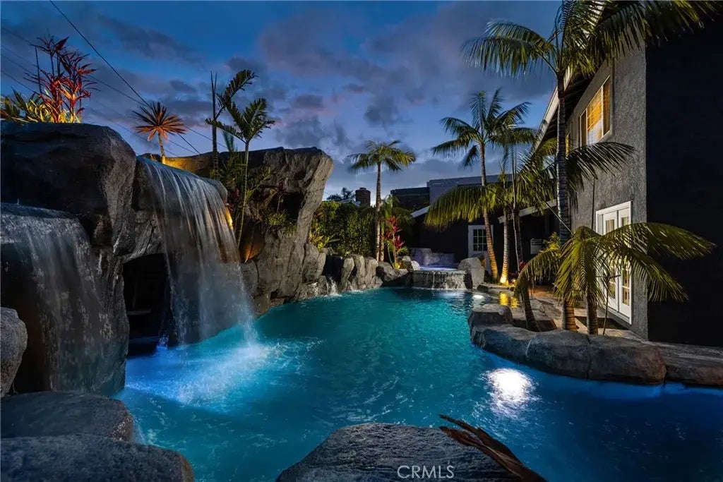 Live the resort lifestyle every day in this tropical coastal retreat just over a mile from the beach! Nestled on a rare 10,250 SqFt corner cul-de-sac lot in Huntington Beachs sought-after Pacific Sands, this expanded & luxuriously upgraded home features a main-floor primary suite making it ideal for those seeking comfort, functionality & resort-style living. The backyard is a showstopperfeaturing a stunning lagoon-style pool with spa, waterfalls, grottos, waterslide, and natural rockscapes, plus a California room with full outdoor kitchen & barbringing vacation vibes to your own backyard. Designed for the modern entertainer, the expansive open-concept great room features a full home theater setup and a stacked stone fireplace, and flows seamlessly into a chef-inspired kitchen. Highlights include shaker cabinetry, chic subway backsplash, oversized 12-seat island, and commercial-grade appliances: 6-burner Southbend range with griddle, dual dishwashers, and built-in Frigidaire Gallery refrigerator/freezer. A walk-in pantry with refrigerator leads to the deep 3-car garage, offering ample room for vehicles & a potential workshop. With two driveways & gated side yard access, theres dedicated space for an RV, boat and up to 7 carsrare in this neighborhood. The main floor primary suite feels like a 5-star hotel offering dual walk-in closets, thoughtful laundry built-ins and a newly renovated spa-like bath with Toto Washlet and a luxurious wet room featuring rain shower and soaking tub. A secondary downstairs bedroom with French doors enjoys pool views and access to a full bathroom.