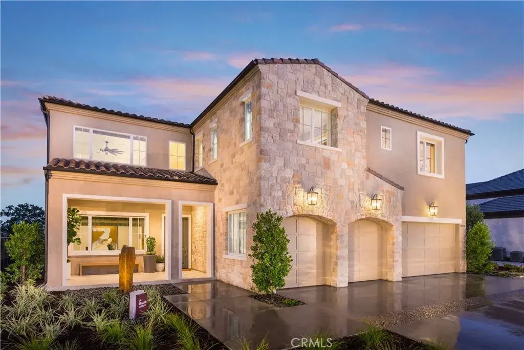NEW HOME with fabulous City Lights, Sunset and Canyon Views on a cul-de-sac location within GATED Saddle Crest community. Designed with folding glass doors to California room, huge upstairs great room, 17 foot island within the graceful gourmet kitchen with wood cabinets and soft close drawers, s, island with sink, secondary sink overlooking back yard, breakfast bar, two dishwashers, Wolf gas range and oven, huge walk in pantry, plus a casual dining and formal dining room. This home is designed with a ensuite bedroom on the lower level and an office off the entry. The upstairs primary suite includes a huge walk-in closet, soaking tub, walk in shower and more Includes a large, covered California Room off of the great room at Kitchen. 4-car garage and pool sized lot Pictures are of the model home.