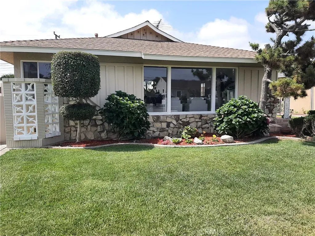 *** PLEASE NOTE: Additional square footage on the property not included in Assessor's stated use. Enclosed sunroom - 450 square feet and an outbuilding - 280 square feet. Welcome to this beautifully renovated single-story home located in Bellflower's "Executive Track". This stunning 3 bedroom, 2 bathroom property has been fully updated, offering modern comforts and style. You will immediately be drawn in by the lush landscaping, stone accents and neutral paint tones. Undoubtedly giving you the feeling of being home. Inside, the thoughtfully designed layout provides a seamless flow between the spacious living area and the dedicated dining space, which are ideal for gatherings. Continuing on, you will come upon a gorgeous newly remodeled kitchen featuring natural stained cabinets, quartz counters with a waterfall edge, a pleasing backsplash, pantry, all new stainless steel appliances and an in-kitchen dining area. An updated laundry room, off the kitchen, has been freshened up with new overhead cabinets adding convenience to everyday living. As you mosey on you cannot help but notice the newly painted walls and flooring that flows effortlessly throughout; including the primary and secondary bedrooms. Both bathrooms have been wonderfully renovated with design-inspired touches that blend style and functionality. Now to the spacious sunroom with its bright and airy ambience giving you more than enough space to be utilized as a second living area. As you go outside, make sure to take a peek at the charming casita-like building; featuring a true multi-purpose space that perhaps ca